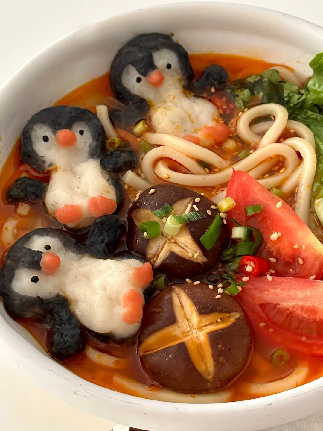 把鱼丸捏成小企鹅的样子,还舍得吃嘛![哇R][哇R]