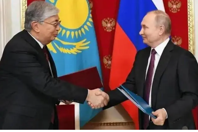 俄总统普京对哈萨克斯坦进行正式访问,哈萨克斯坦总统托卡耶夫打破常规,出人意料地用哈萨克语对俄罗斯代表团发表演讲。