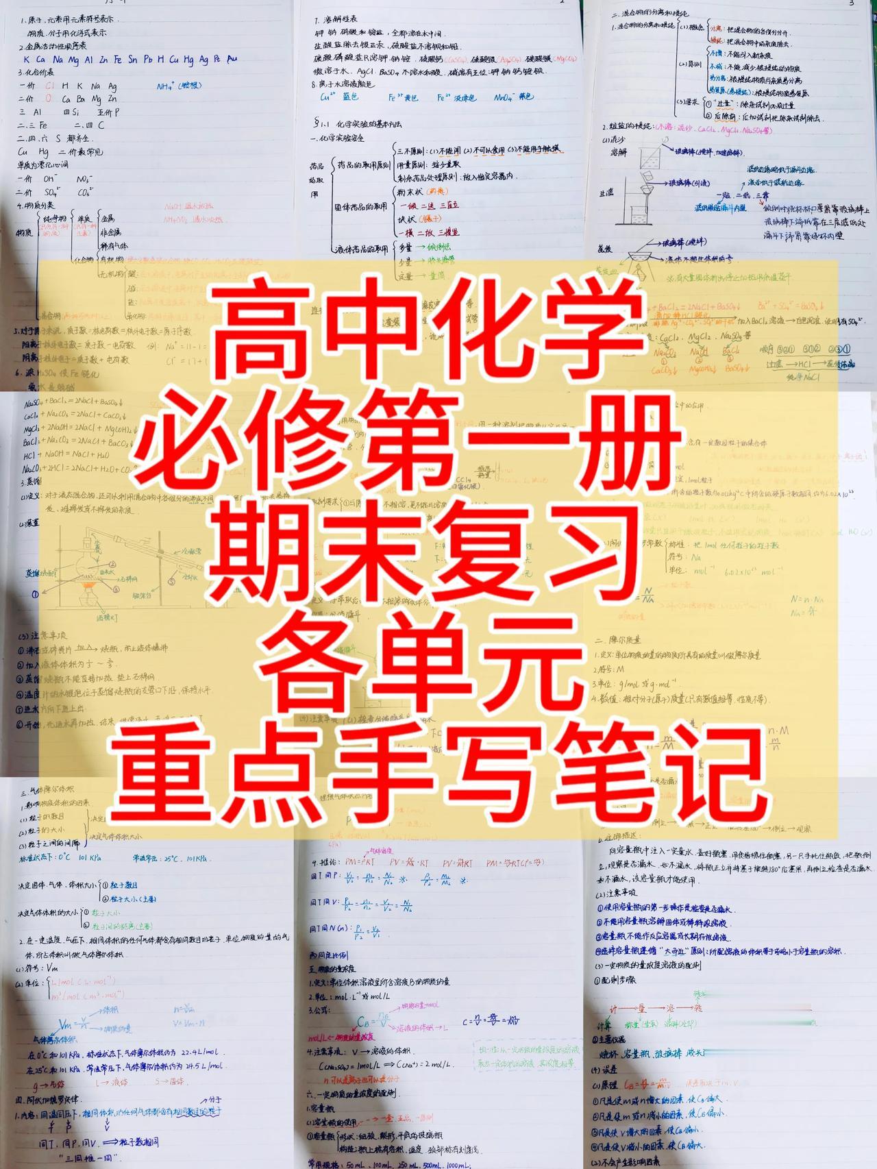 高中化学,必修第一册,期末复习,各单元必背、必考重要知识点总结,期中没考好,失去信心的同学,吃透这份笔记,让你找回自信,期末考试必出重点都在这份手写笔记里面,耗费11天时间,一个字一个字写出来的,重点内容全部都在这里,赶紧保存打印出来吧。#高中化学# #高一化学# #必修一化学#