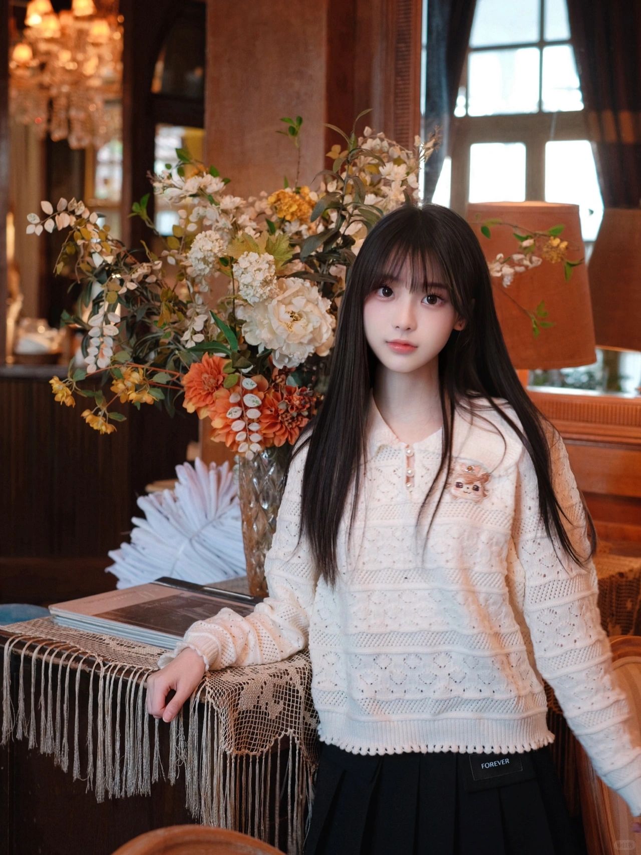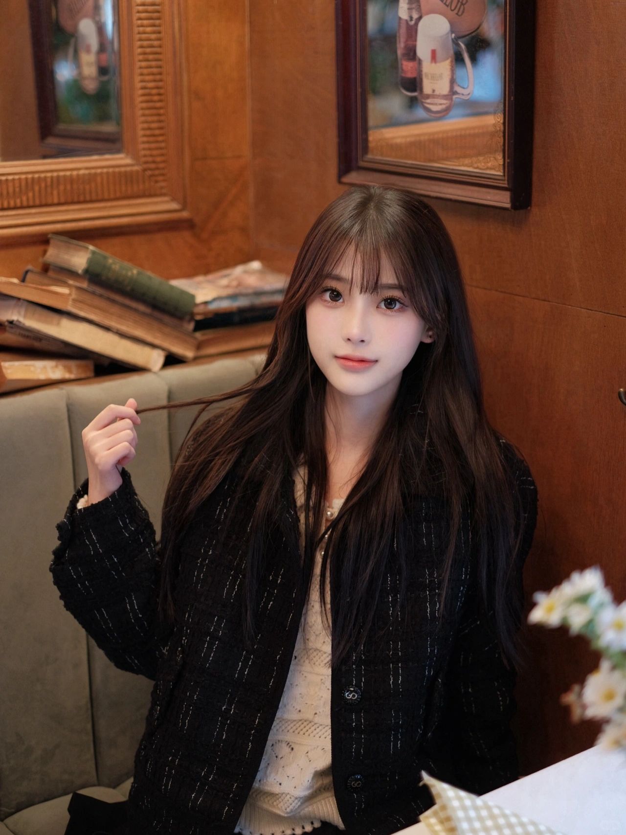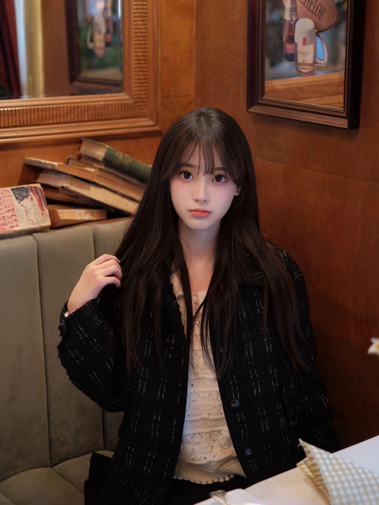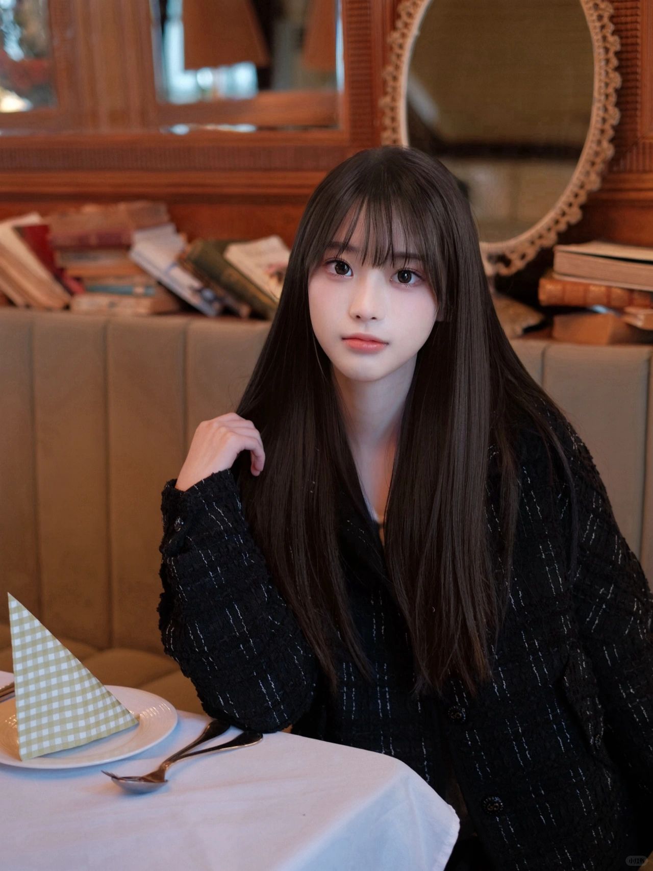 学习韩女在咖啡馆拍拍
