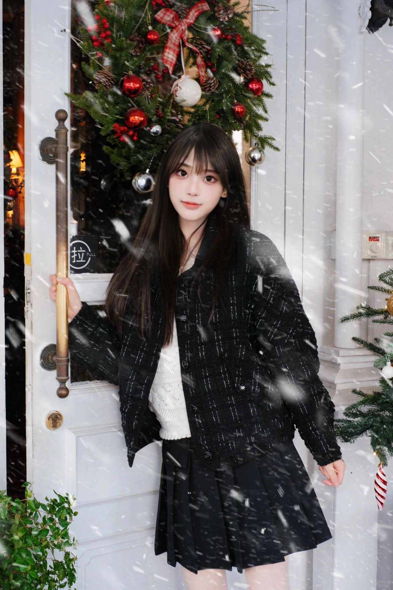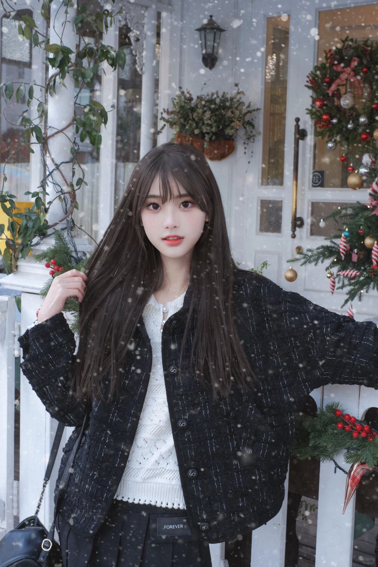 上海圣诞氛围很浓诶!希望今年能看到有雪景的圣诞! 今天穿的衣服是小香风 去欧式餐厅拍照简直不要太配啦!