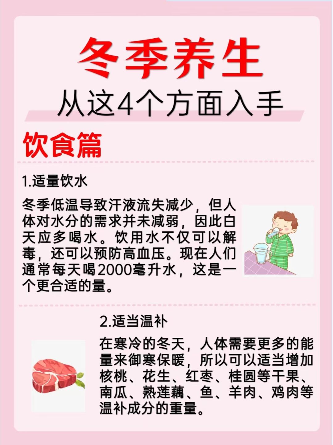 适当进行户外运动,如散步、慢跑等,增强身体耐寒能力。在寒冷的冬季,从细节入手,让养生成为一种生活方式。