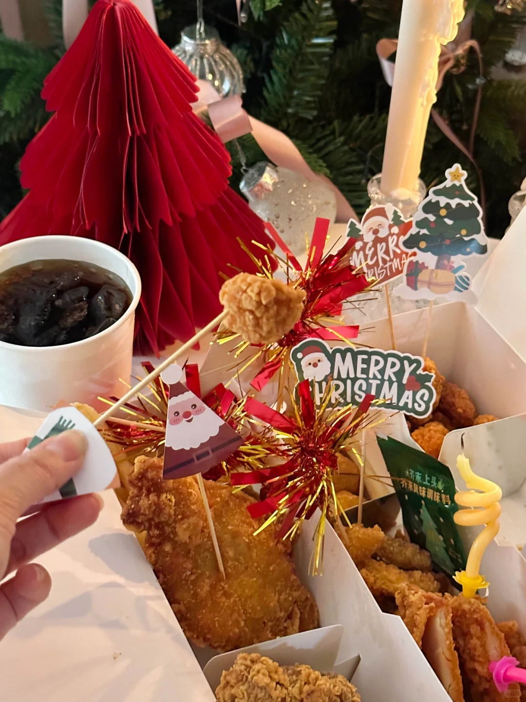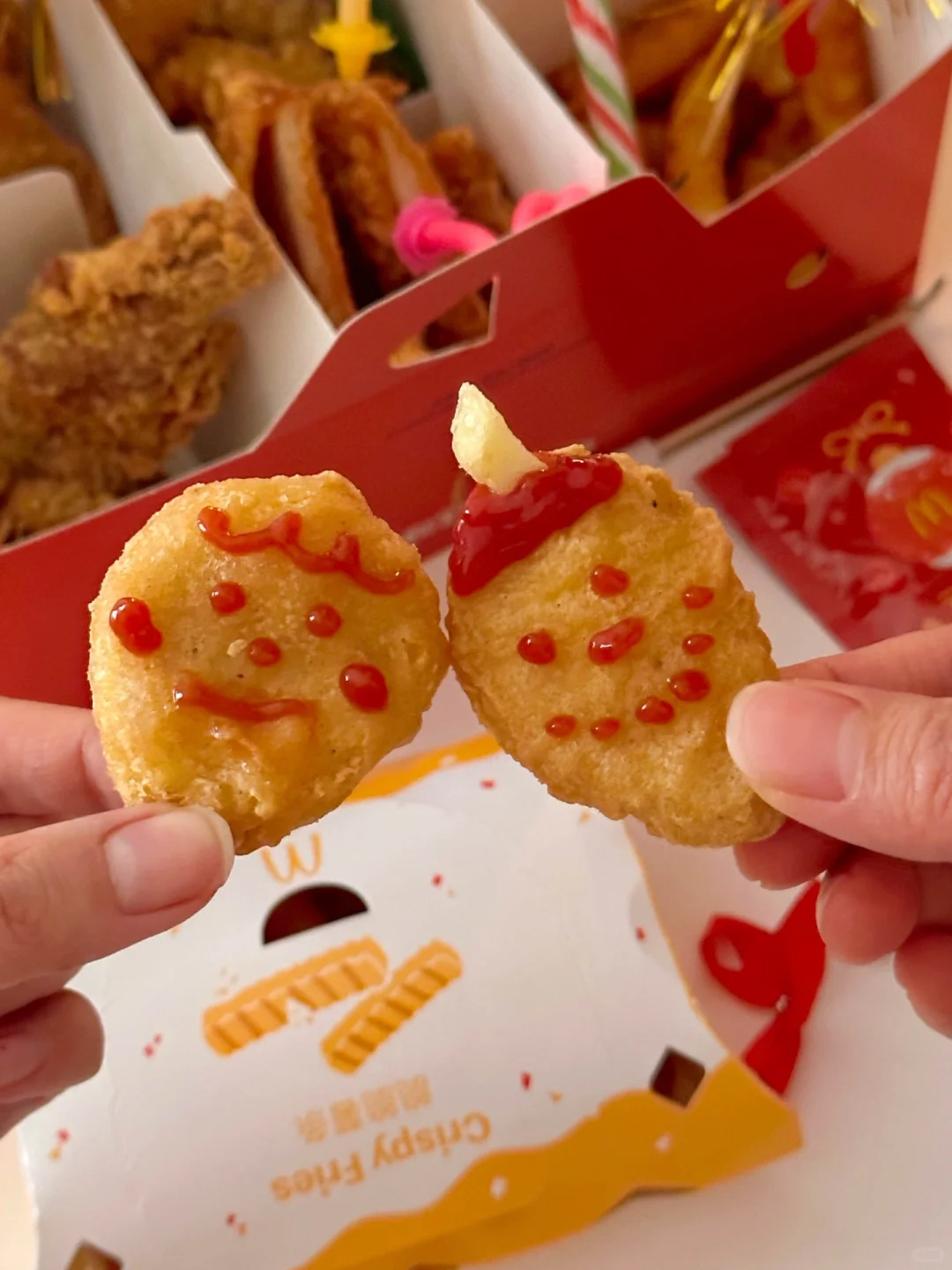 麦门信徒们的🎄圣诞夜,与伙伴们分享🍻的欢乐时刻,当然少不了这一份BFF九宫格小食拼盘![萌萌哒R] 装饰好的小食拼盘,搭配各式麦门饮品,即可构成一桌圣诞氛围感满满的圣诞晚宴!!和伙伴们举杯同庆欢乐时光吧![两颗心R][两颗心R] 家中刚刚装饰了🎄圣诞树,点上蜡烛,装饰上圣诞氛围感的各种插件摆设,用麦门自带的番茄酱画出可爱的小雪人形象,干杯!拍照!一定会成为圣诞夜最有氛围感美图呀~[偷笑R] 这份小食拼盘集合了九种小食,每个都是麦当劳的必吃产品,百吃不厌,欲罢不能!香酥多汁的琵琶腿,酥肉和鸡胸,辣爽可口的麦辣鸡翅,外酥里嫩的鸡排!经典的麦乐鸡和趣鸡球!表面微脆,内里绵软的小薯,特调的洋葱乳酪风味脆脆薯条,入口咸香!痛快的享受这份美味吧!!