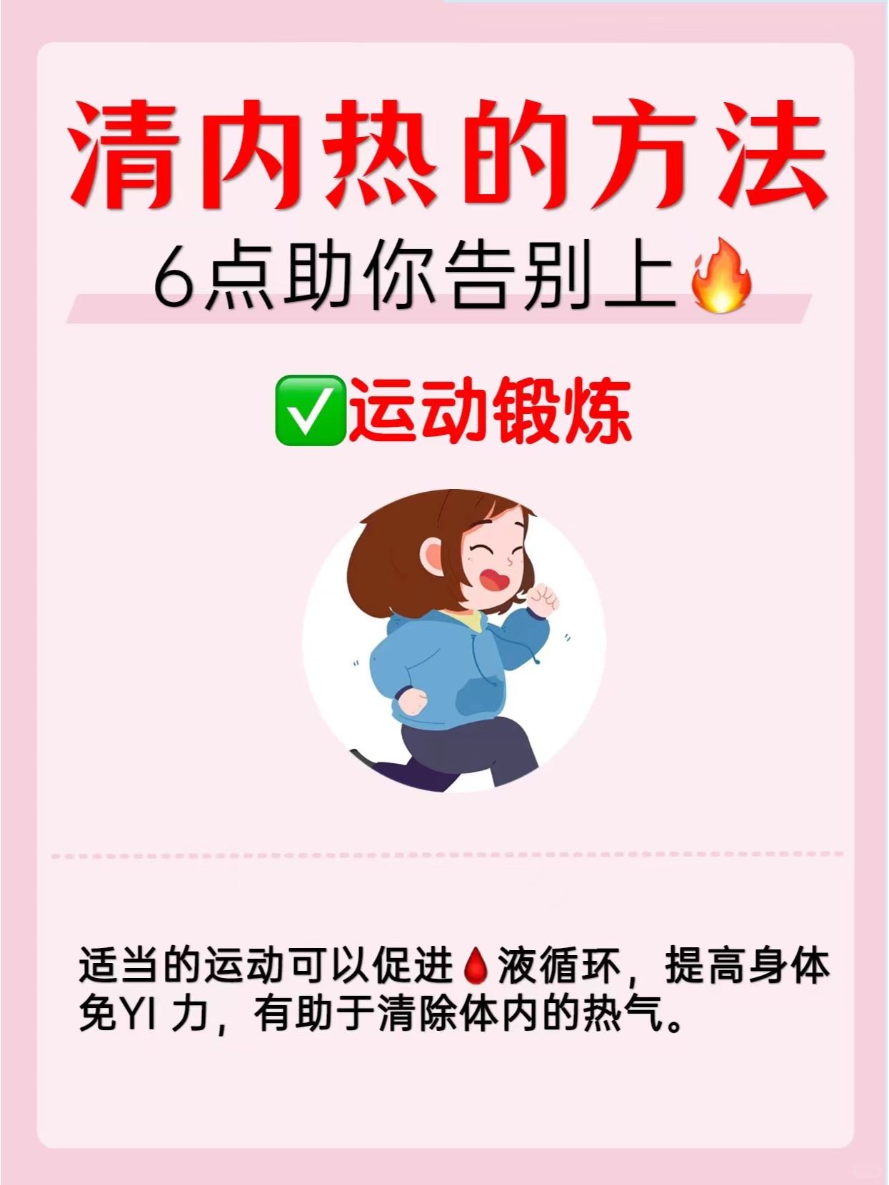 3️⃣运动锻炼:适当的运动可以促进血液循环,提高身体免疫力,有助于清除体内的热气。