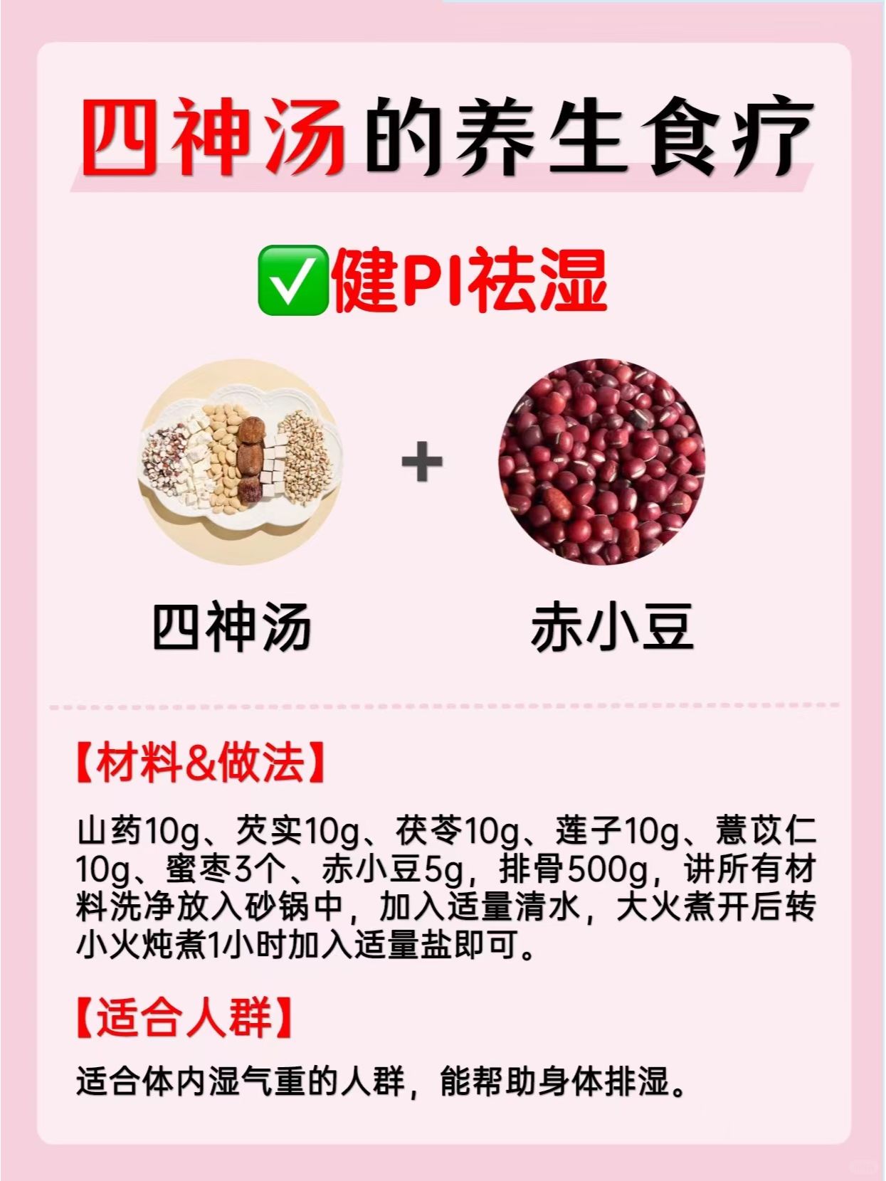 四神汤+赤小豆 (适合体内的湿气重的人,能帮助身体排湿)
