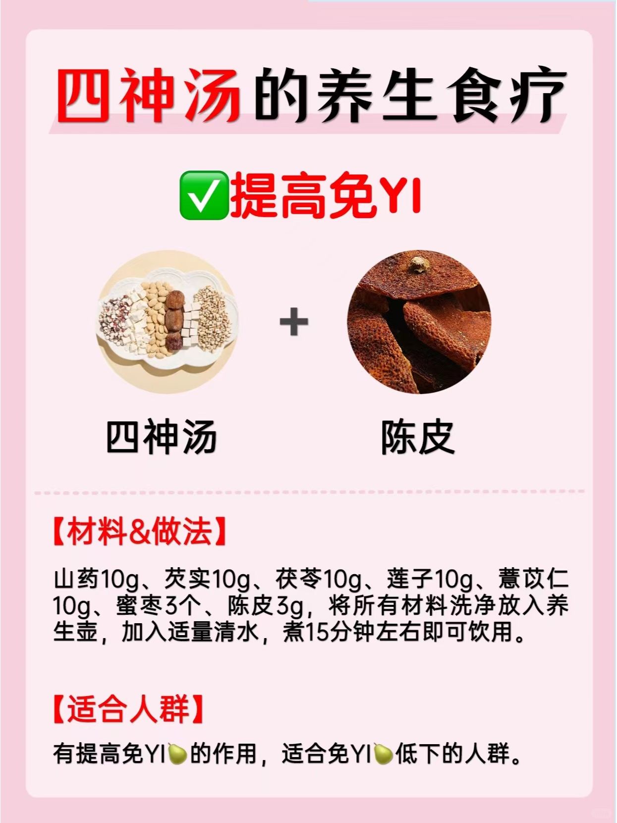 四神汤+陈皮 (有提高免YI 力作用,适合免YI 力低下的人群)