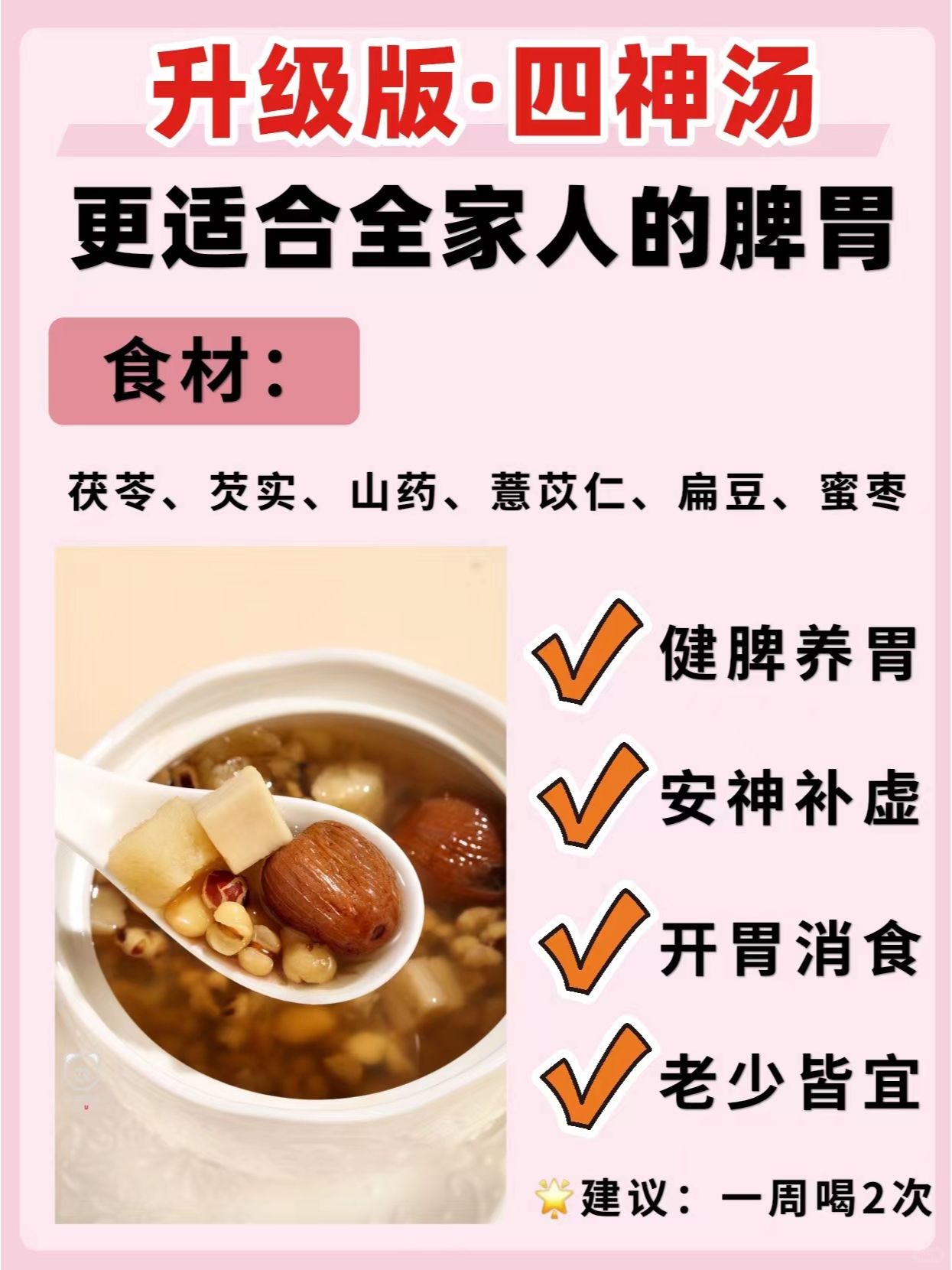 今天给大家推荐的是对PI胃更好的升级版四神汤方: