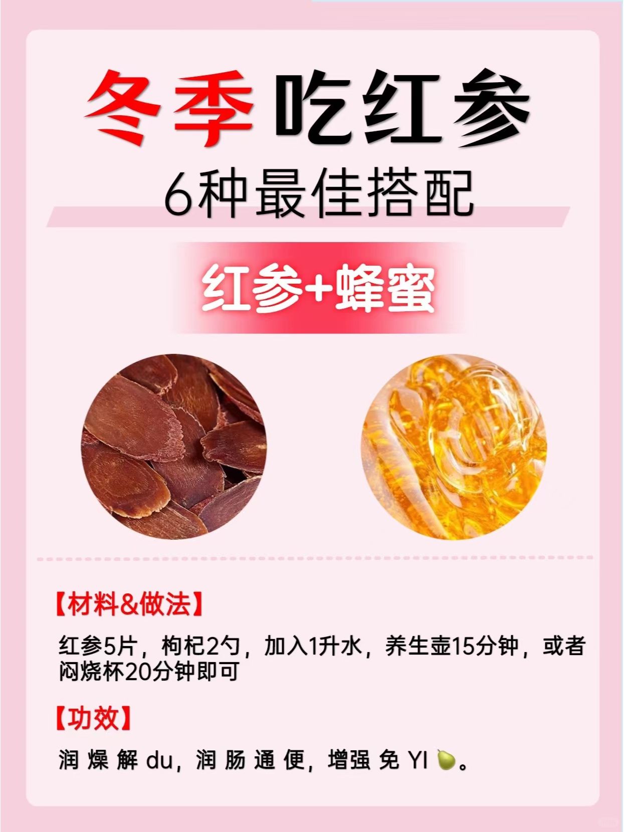 2️⃣红参+蜂蜜:润燥解du ,润 肠 通便,增 强 免 YI 🍐。
