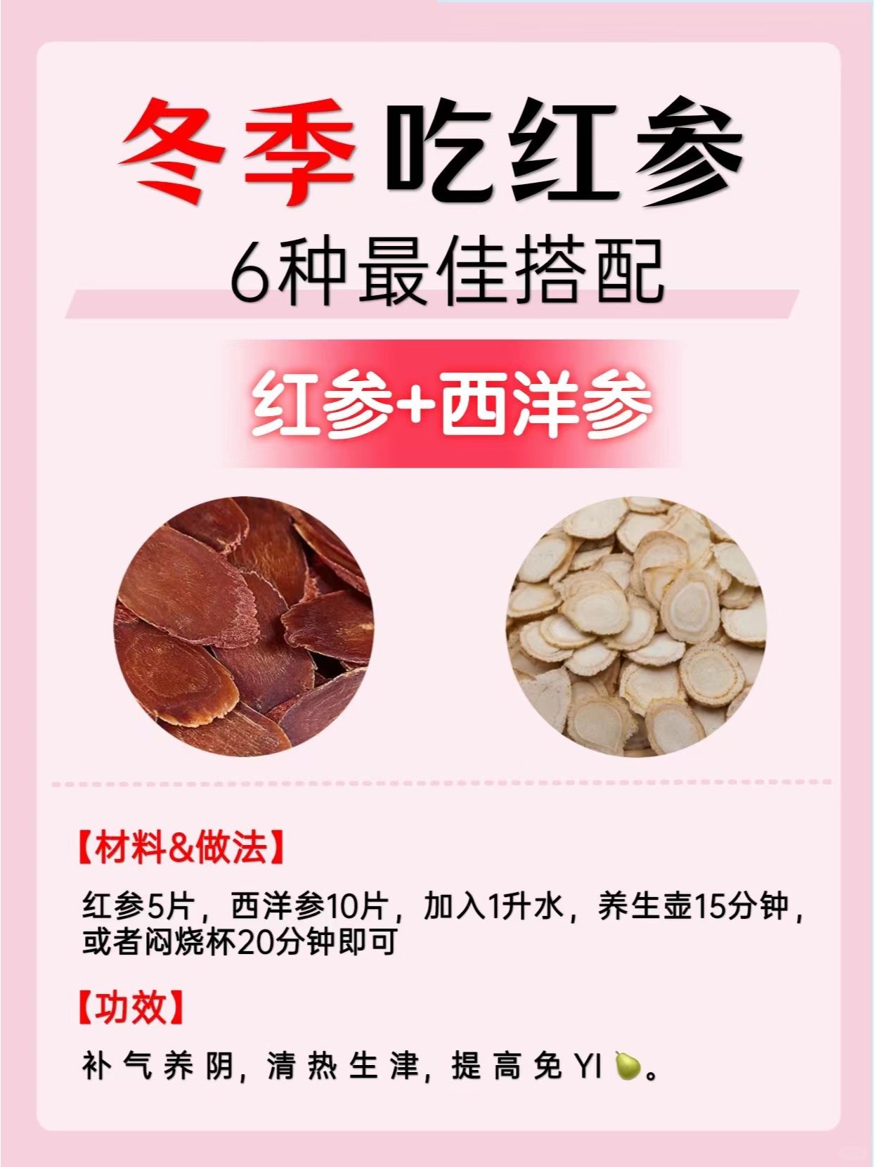 5️⃣红参+西洋参:补 气 养 阴,清 热 生 jin,提高 免 YI 力。