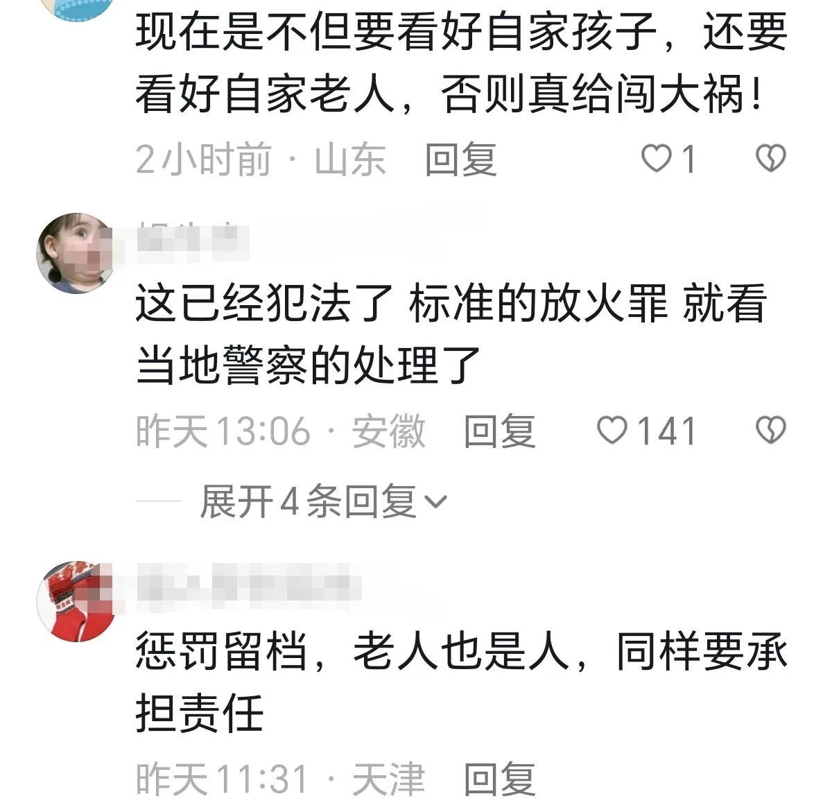 什么仇什么怨?近日一名老人,深夜推倒一辆电动车后,放火烧毁电动车,而小区附近就是石油公司,跟这样的老人做邻居真是要命啊! 网友:现在是不但要看好自家孩子,还要看好自家老人,否则真给闯大祸! 网友:不能因为老了就纵容不管,必须严惩。 网友:这已经犯法了,标准的放火罪。