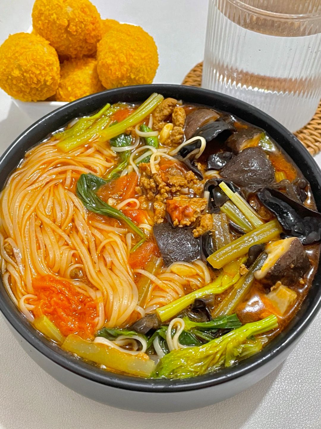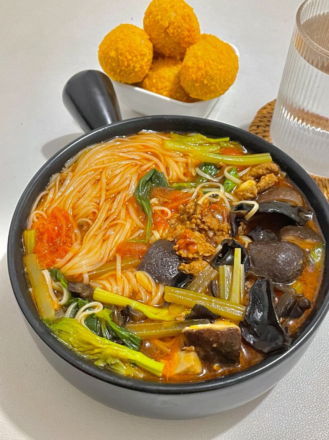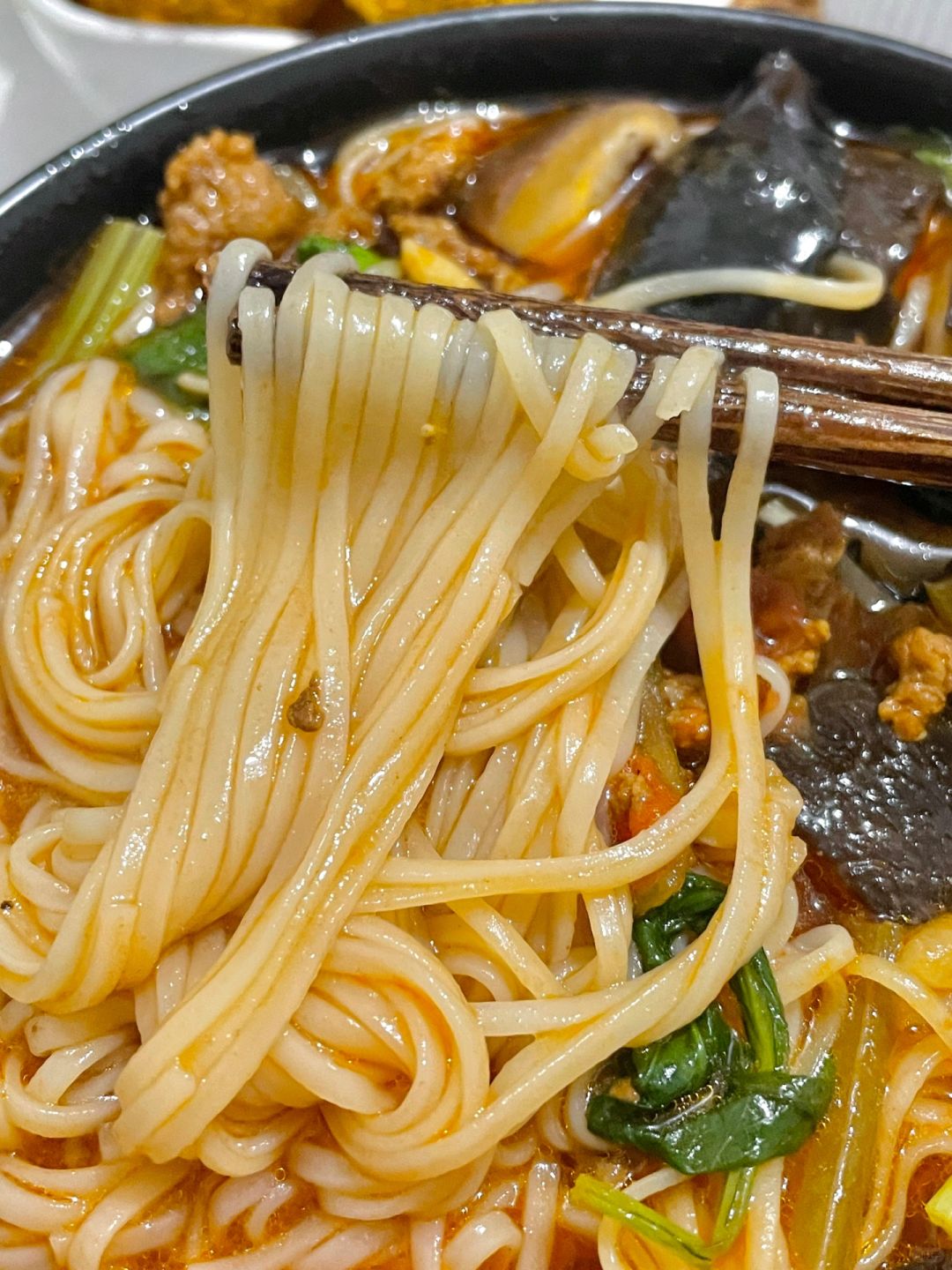 不知道吃啥的时候来碗肉末炝锅面,汤很鲜,每次汤都能喝完~喜欢配菜很多的面,一口下去超满足~