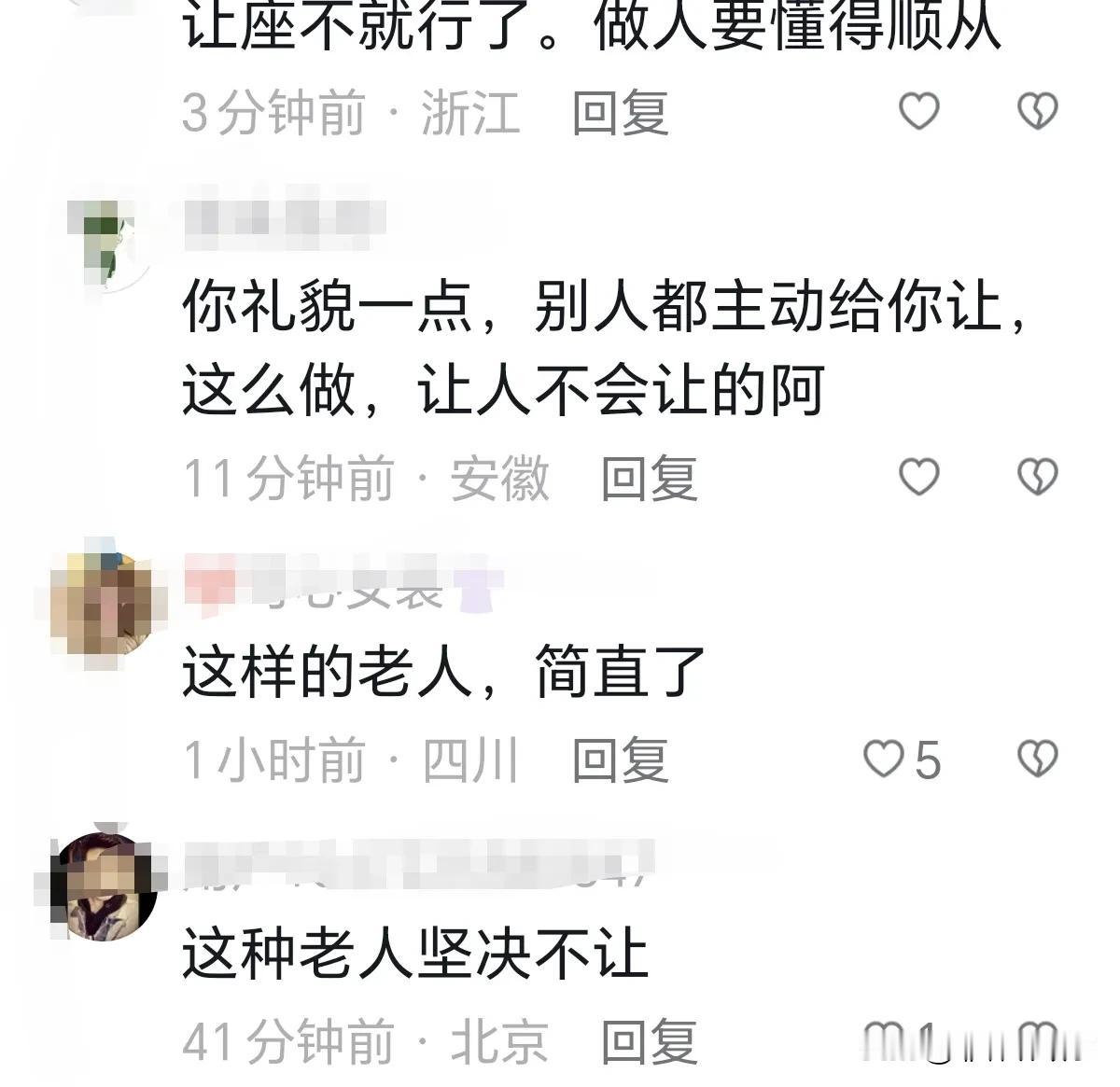 近日广州,一白发老人腿痛,让别人让座,没有一个让座的,直接拿出水杯,用水泼座位上的乘客,这个时候有乘客被泼跑了,旁边的大叔:“别人没有义务给你让座”。 白发老人:我是老人我脚疼,关你什么事? 乘客大叔:这里是广州,就关我的事。 网友:你礼貌一点,别人都会主动让座。 网友:这种老人坚决不让。 网友:她都白头发了,是我在旁边会主动让座,根本不用她开口,不过如果她先开口骂人泼水,那我不会让座了。