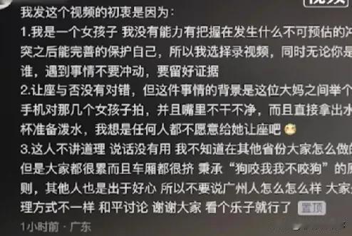 近日广州,一白发老人腿痛,让别人让座,没有一个让座的,直接拿出水杯,用水泼座位上