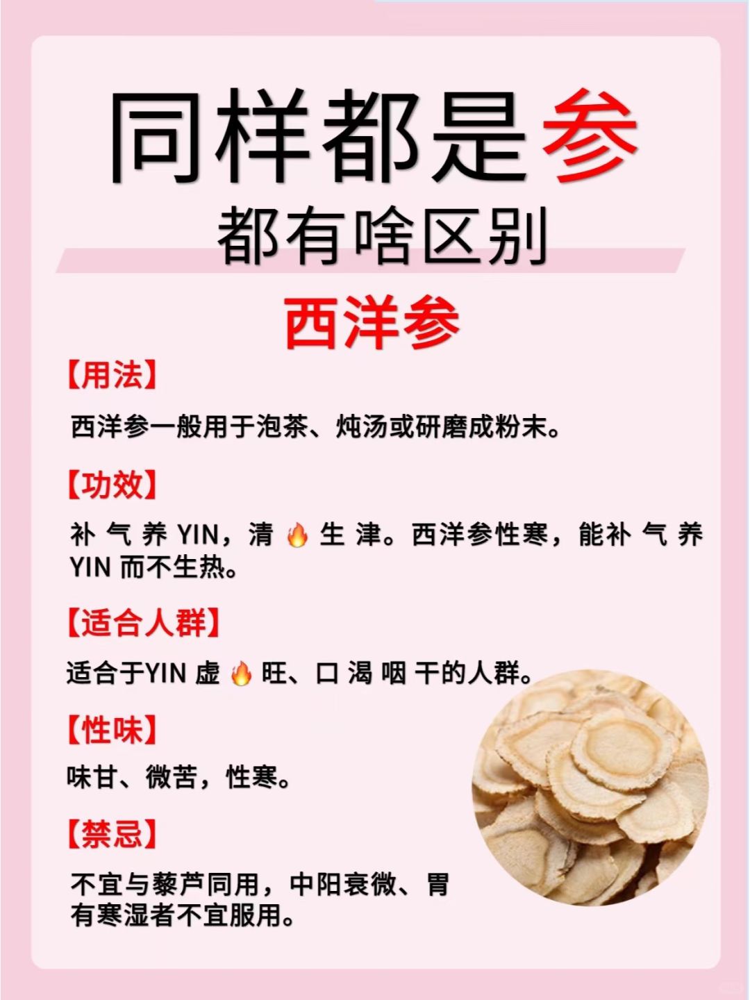 功效:补 气 养 YIN,清 火 生 津。西洋参性寒,能补 气 养 YIN而不生热。