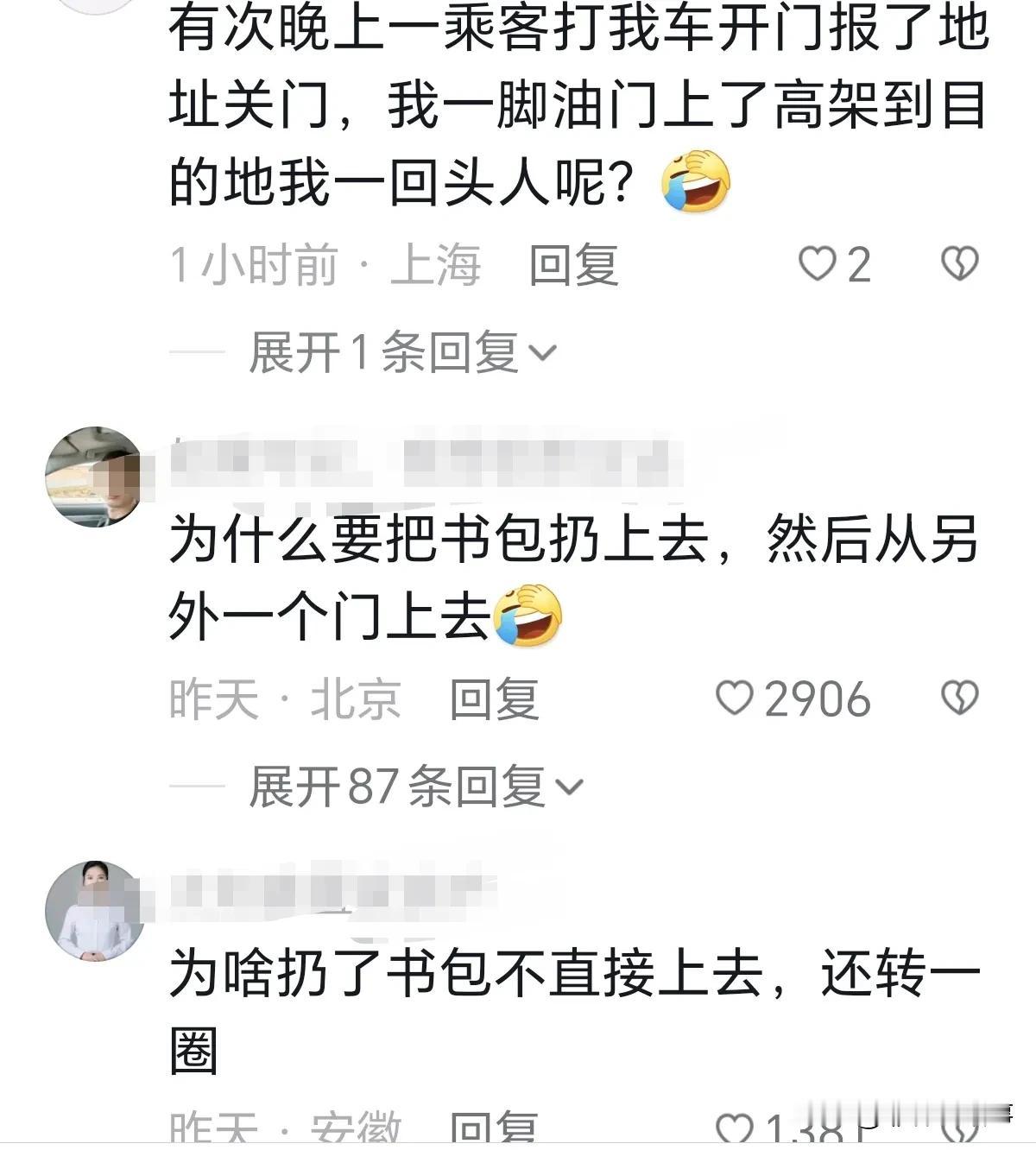 有人和这位爸爸一样么?早晨起来送孩子上学,孩子把书包刚扔上车,爸爸就自己开着车跑了,留下儿子在后面追车,爸爸开到学校了,和儿子说话,儿子不搭理他,爸爸就生气了,一回头儿子呢?儿子不见了,最后爸爸回头接儿子,还好没迟到。 儿子说:爸爸你真是个人才[赞][赞][赞] 这事让我想起了我小时候骑自行车上学,人到学校了发现书包没拿,还有一次穿着大棉裤出去了,走半条街发现没穿外面的裤子。 网友:有次晚上一乘客打我车,开门报了地址关门,我一脚油门上了高架到目的地我一回头人呢?