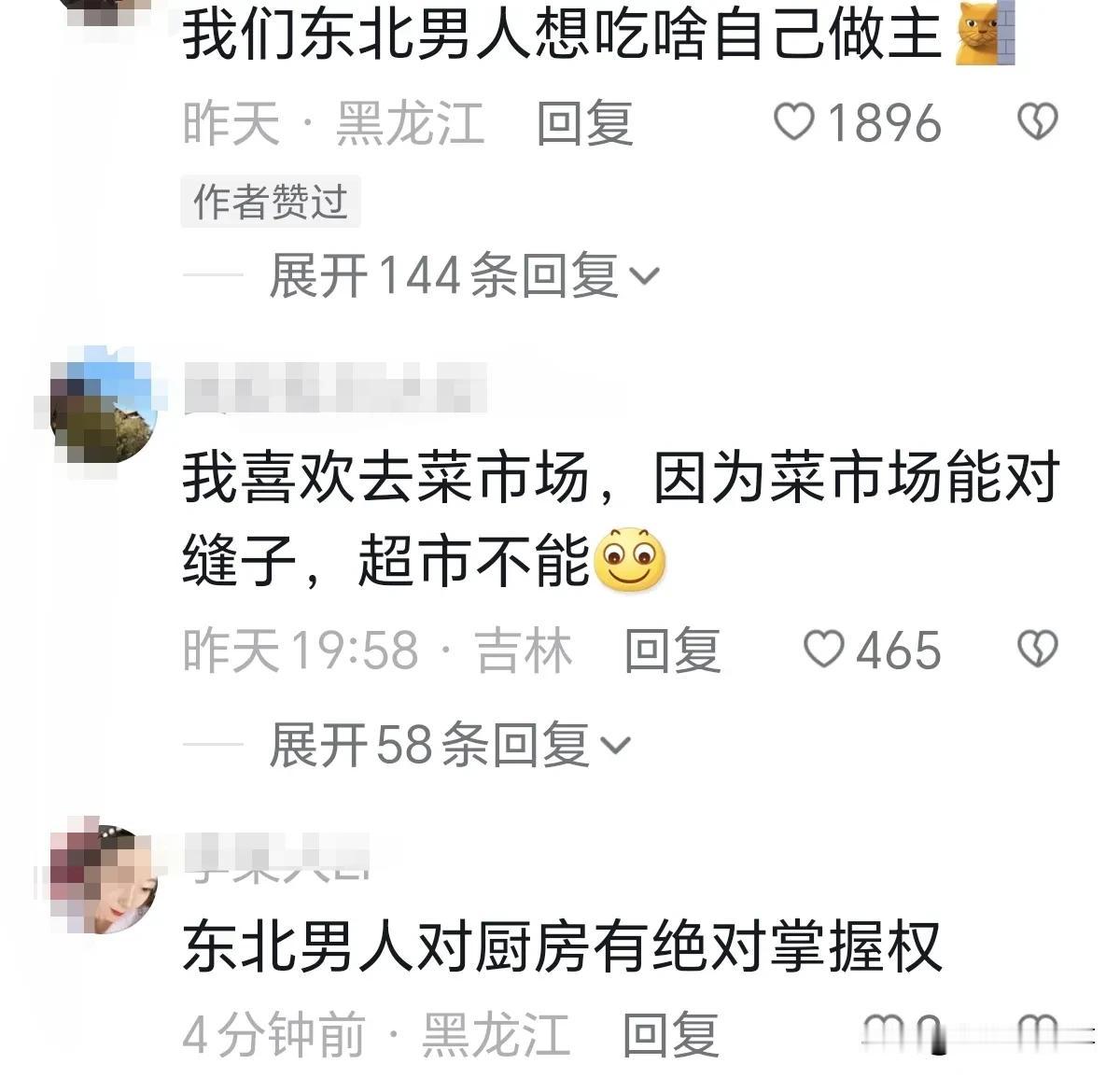 哈尔滨菜市场挺有意思,买菜的清一色是老爷们,都说因为东北女性地位高,很多男人们都做家务,东北男人上得厅堂下得厨房,主打一个外面顶天立地,家里贤惠体贴性价比高。 网友:我们东北男人想吃啥自己做主。 网友:我喜欢去菜市场,因为菜市场能对缝子,超市不能。 网友:东北男人对厨房有绝对掌握权。