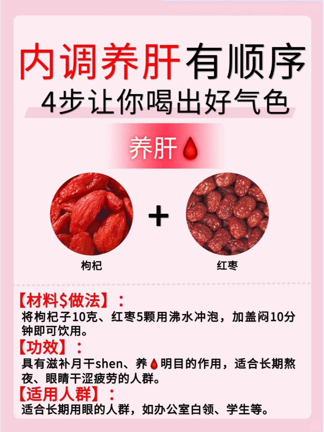 👉 做法:将枸杞子10克、红枣5颗用沸水冲泡,加盖闷10分钟即可饮用。