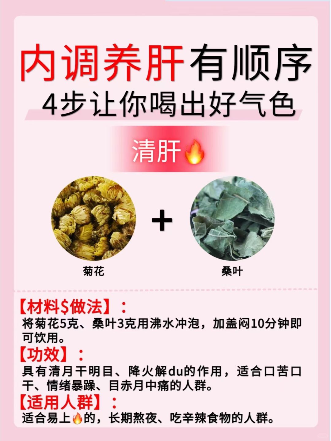 👉 做法:将菊花5克、桑叶3克用沸水冲泡,加盖闷10分钟即可饮用。