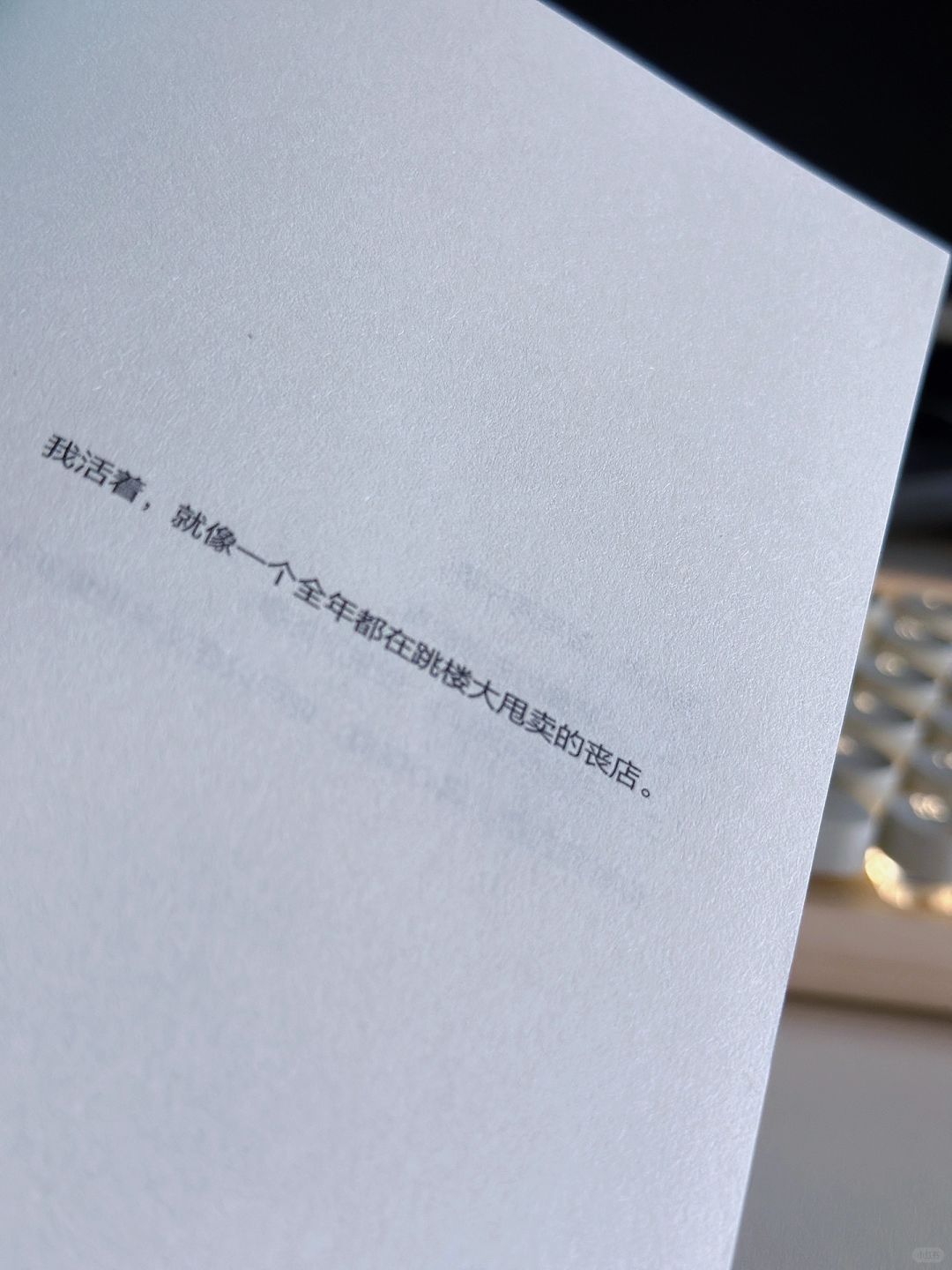 示野说:“我活着,就像一个全年都在跳楼大甩卖的丧店。”