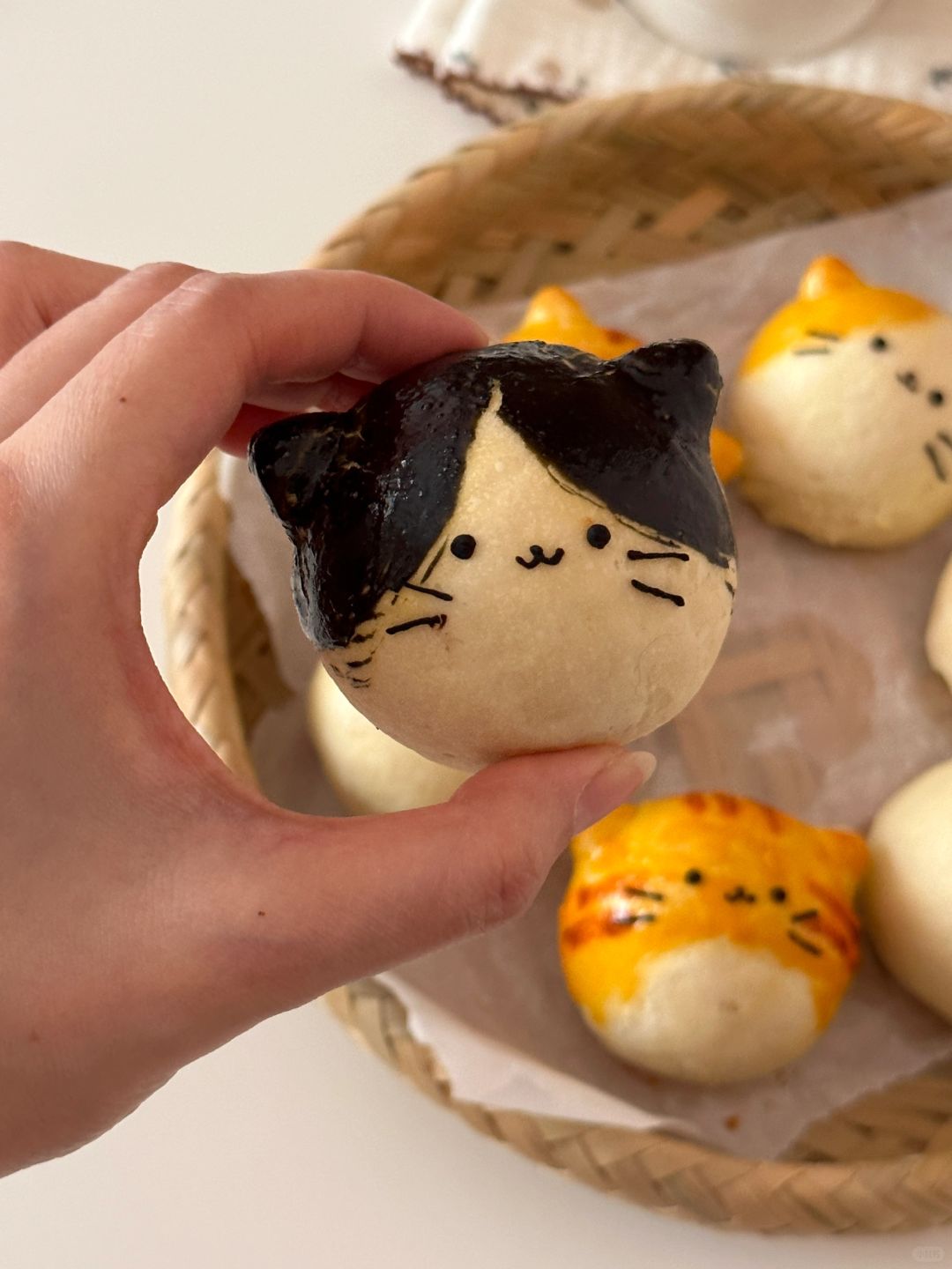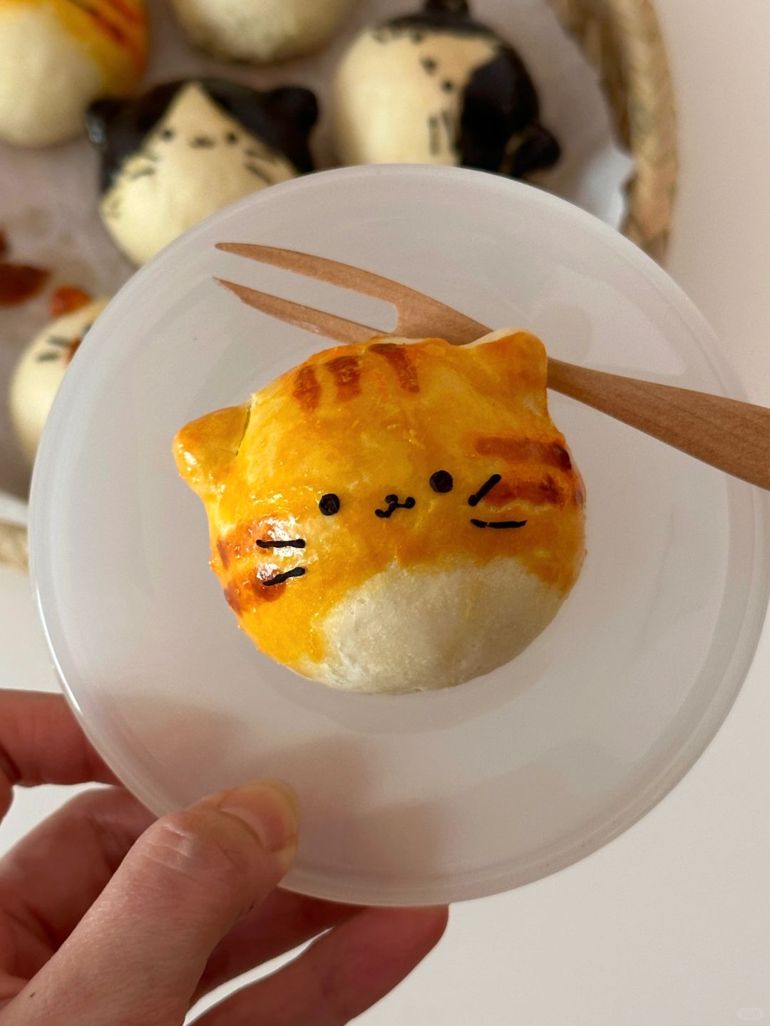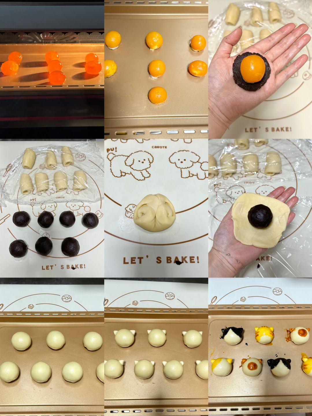 可爱[萌萌哒R][两颗心R]又很好上手的猫咪蛋黄酥,不同的猫咪花纹只用一颗蛋黄➕不同可食用色粉就可完成呀~