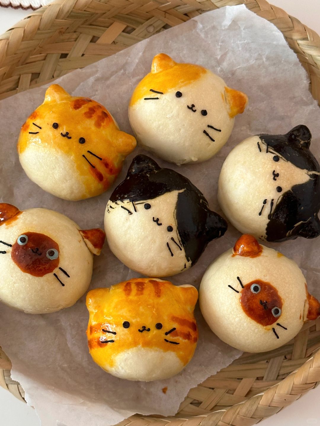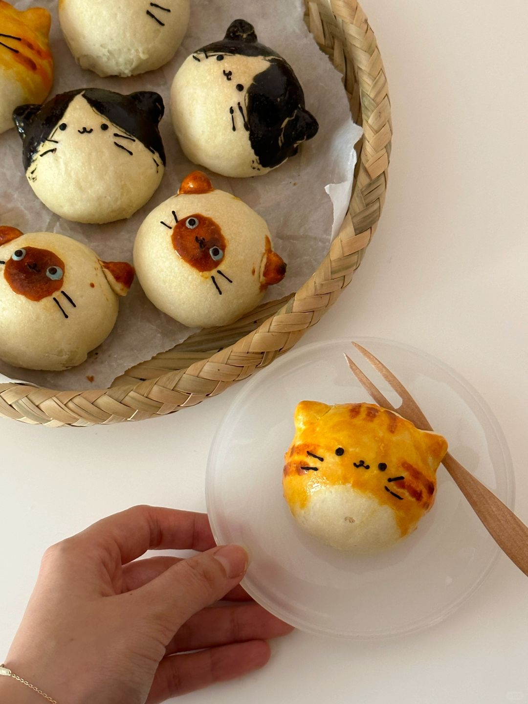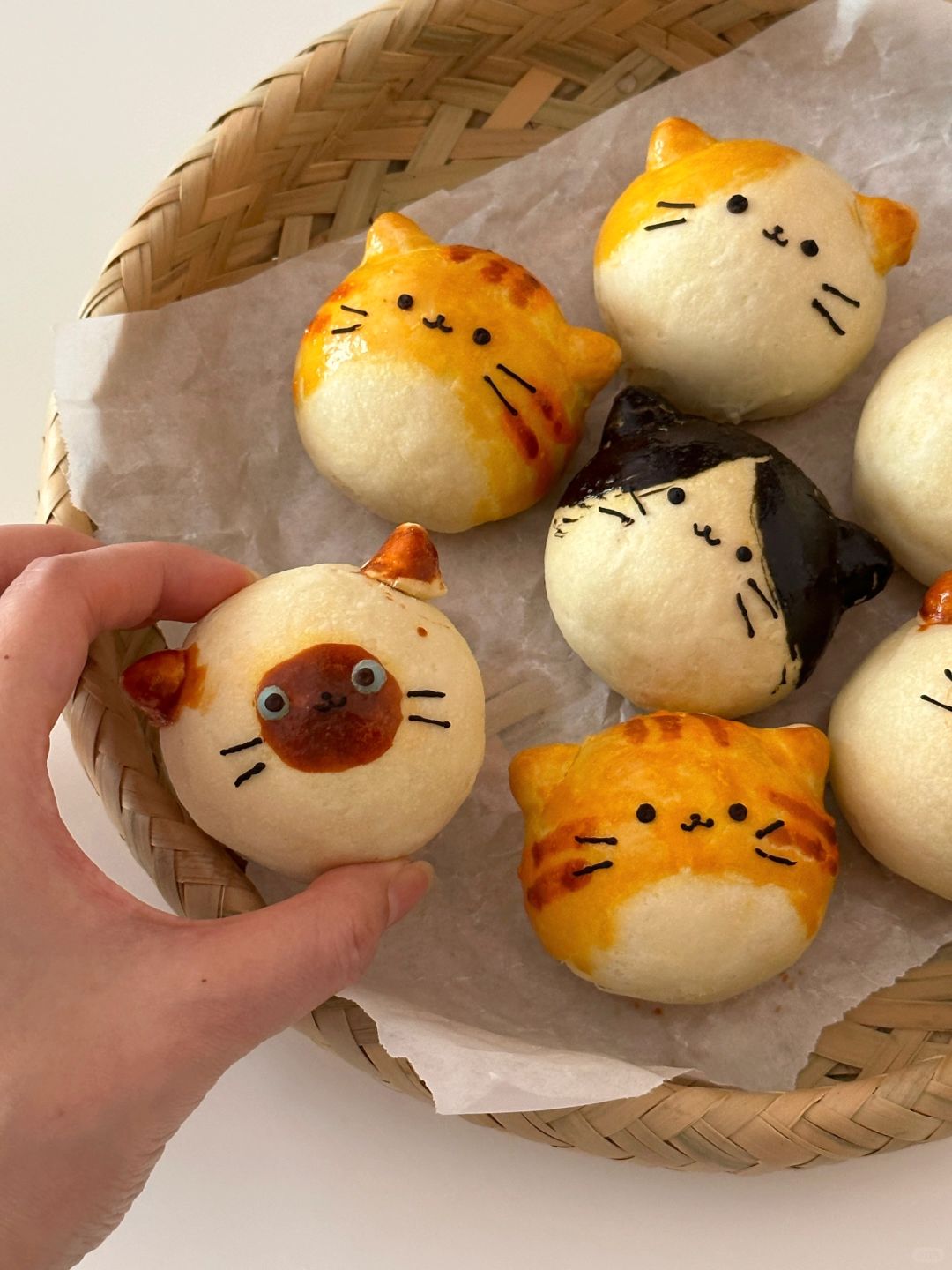 可爱[萌萌哒R][两颗心R]又很好上手的猫咪蛋黄酥,不同的猫咪花纹只用一颗蛋黄➕不同可食用色粉就可完成呀~