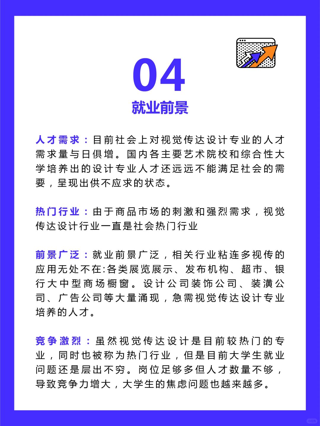 💫四个方面告诉你视传就业方向前景 1⃣就业方向 2⃣行业分布 3⃣岗位介绍 4⃣就业前景 💌看完笔记,有什么不明白的地方,欢迎联系我,我是帮助求职迷茫人的职场大O,助力每个学生拿到心仪的offer。