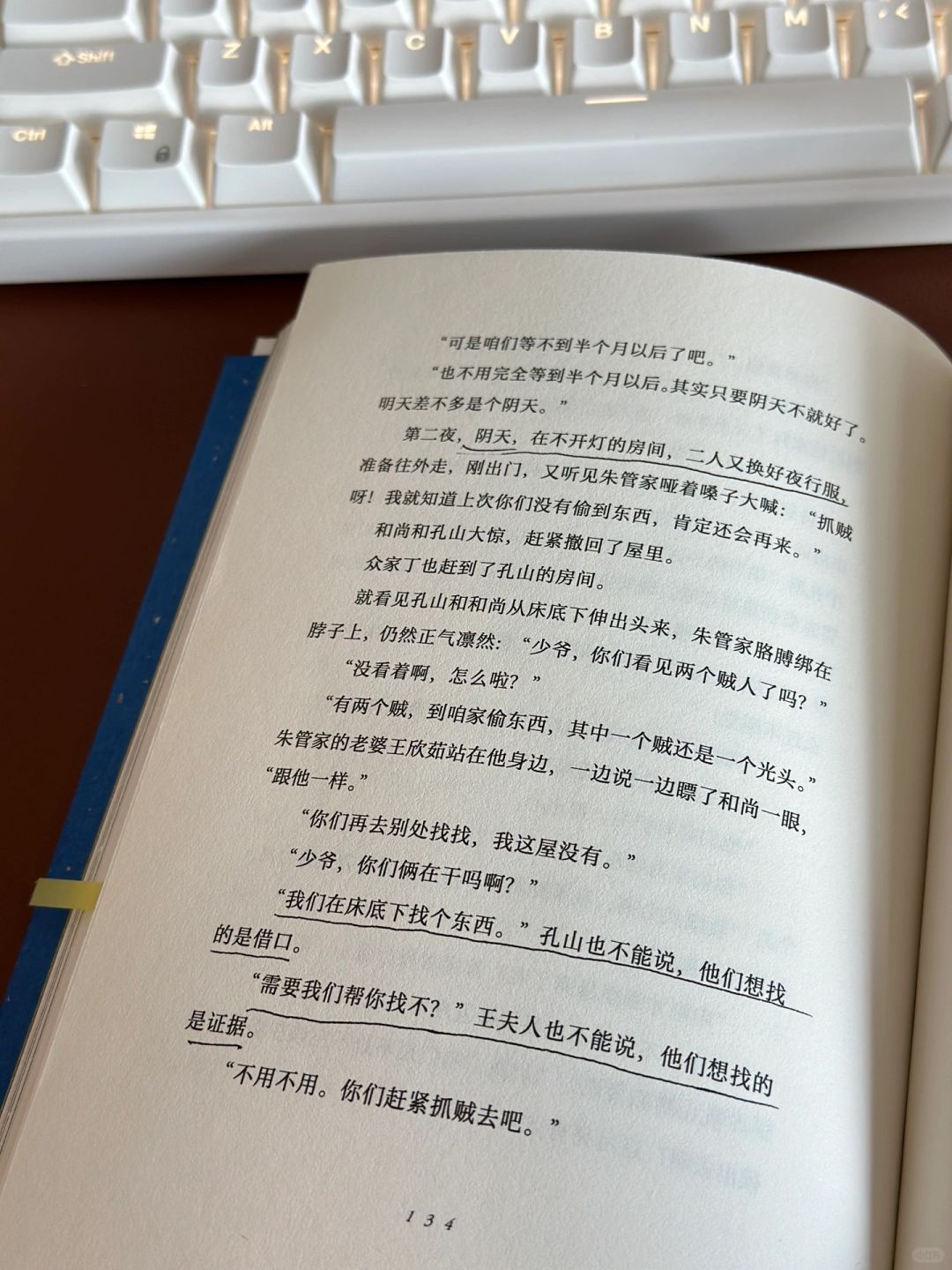 “阴天,在不开灯的房间,⼆⼈⼜换好夜⾏服,准备往外⾛,刚出⻔,⼜听⻅朱管家哑着嗓⼦⼤喊”