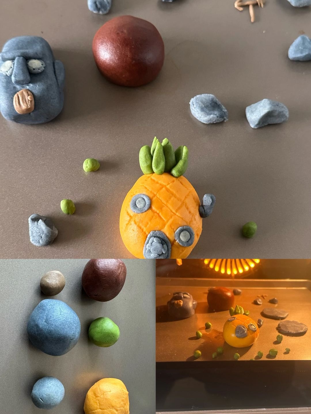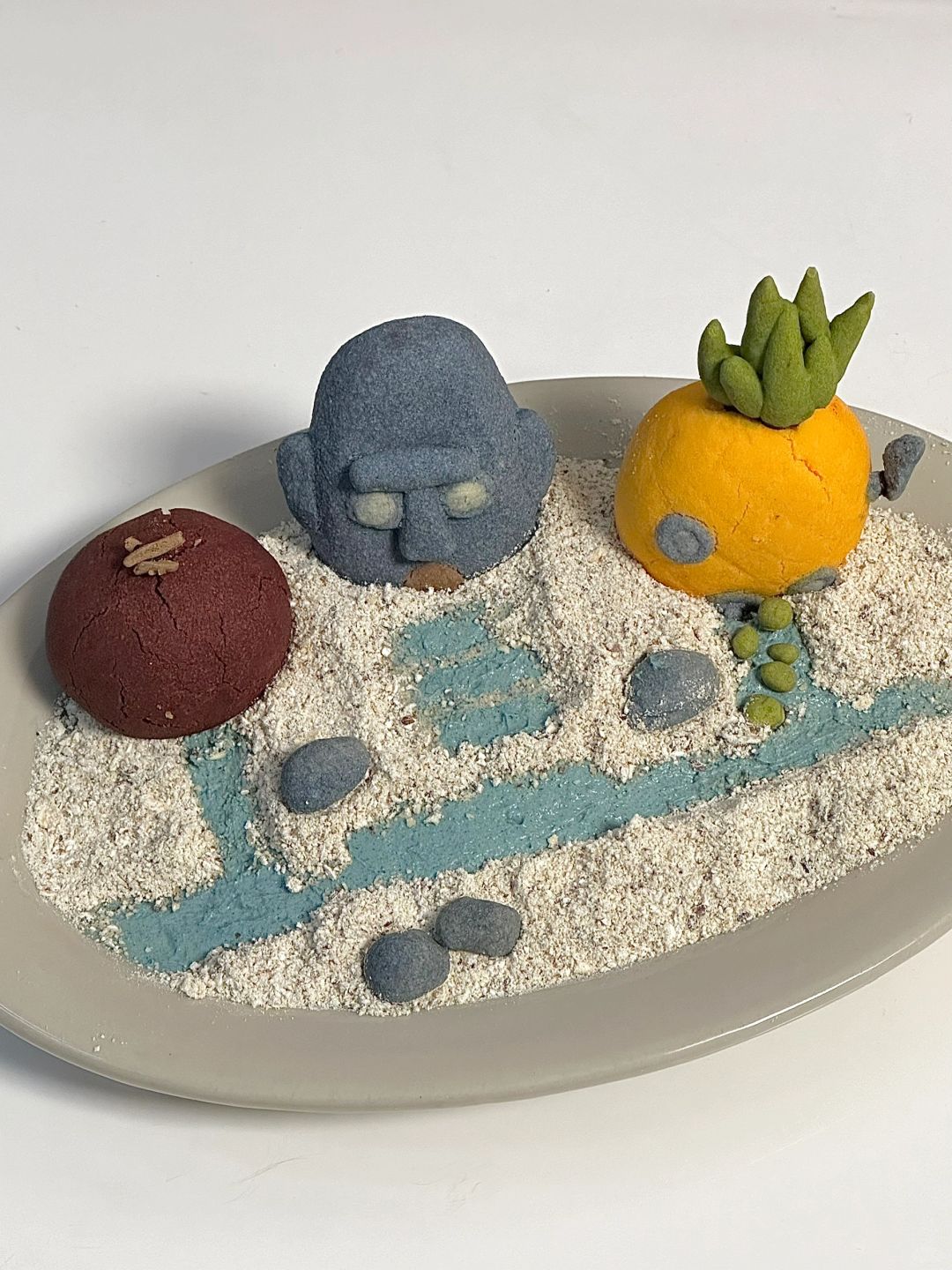 调色:蓝色色粉(蓝色)、红色+黄色色素(橙色)、红曲粉(紫红色)、可可色(浅棕色)、抹茶粉(绿色)