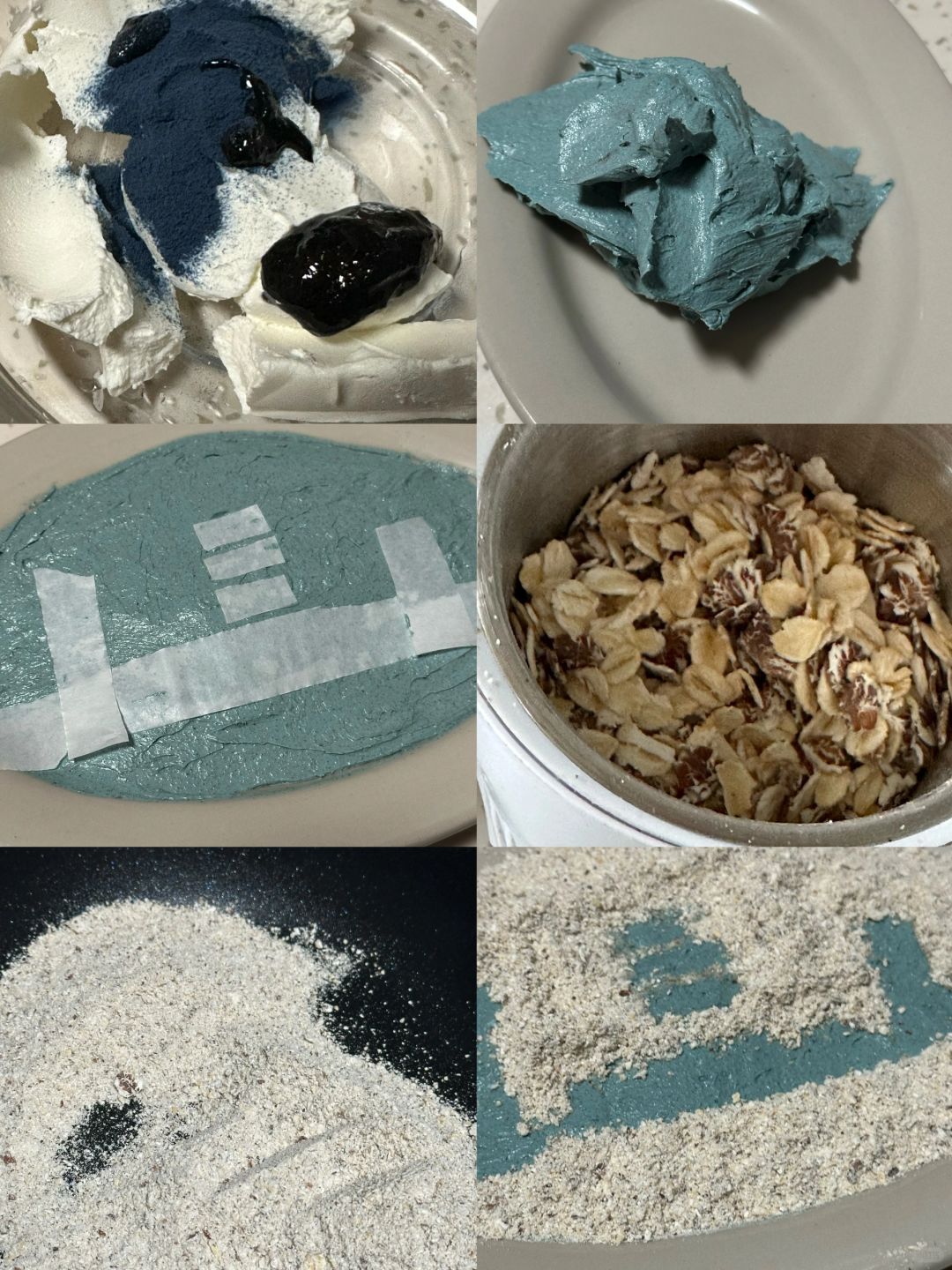 酸奶调色:蓝色色粉、黑芝麻酱