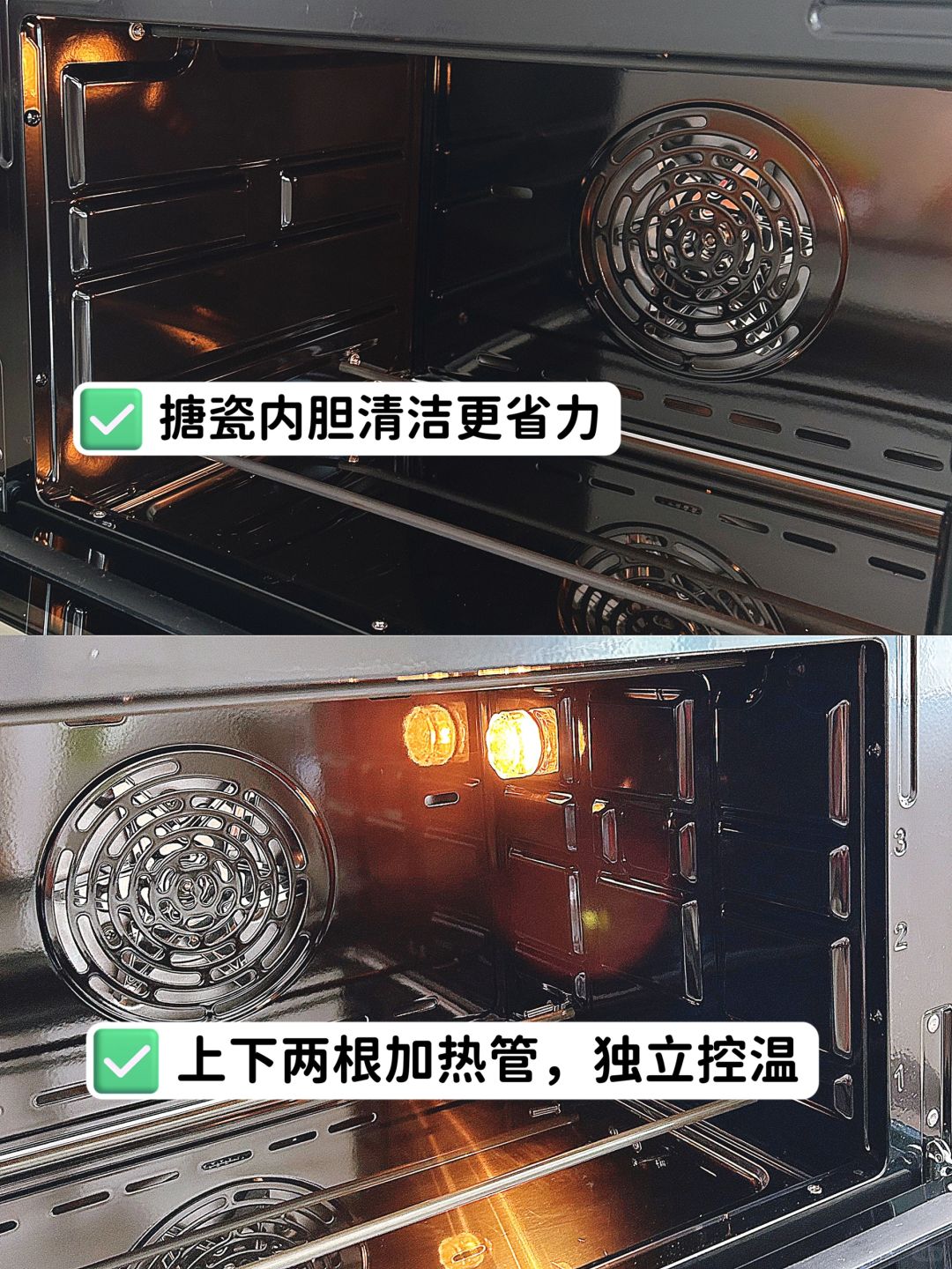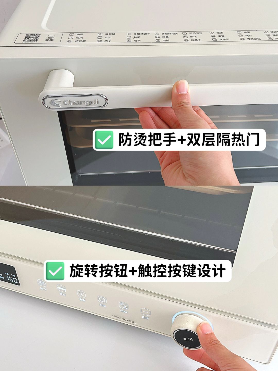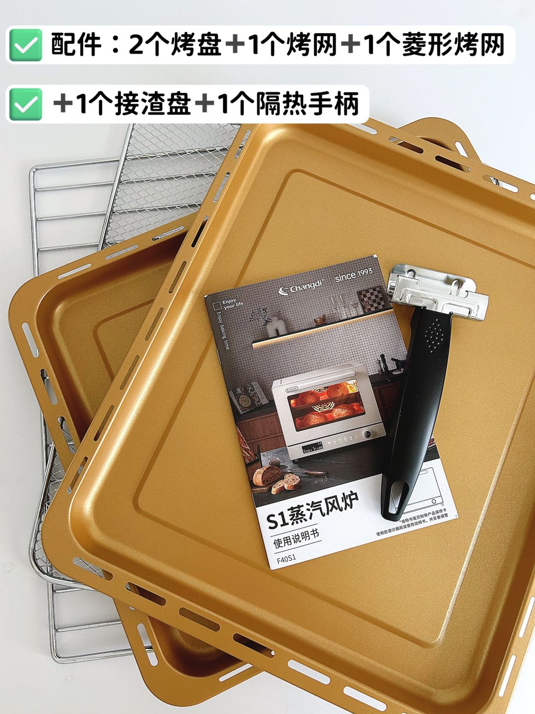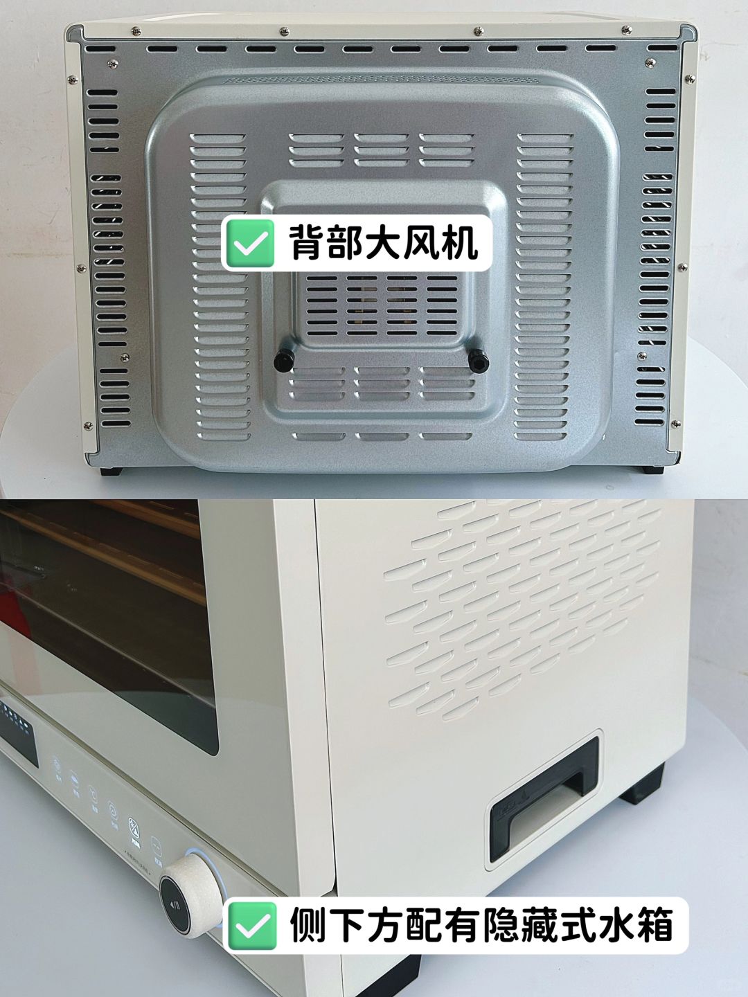 终于拥有这款多功能高颜值的烤箱了,收到就迫不及待开箱了,今天来做个开箱测评,一起来看看吧! 1⃣外观:烤箱主机身是奶白色的,奶fufu的,颜值没得说,简约大气又百搭 2⃣容量:40L容量,能多层同烤,可以同时烤2个6寸戚风,2个8寸披萨,38个蛋黄酥,38个月饼,吐司4个,鸡翅38个等,在风炉模式下,可以轻松两层同烤,甚至可以三层烤饼干 2⃣功能:风炉、平炉、蒸汽烤三合一,独立操作,自由切换,一度一调节,有空炸,干果,发酵,解冻,保温等功能,还带有30款智能常用菜单,多层烤饼干、多层烤泡芙、多层发酵,还有煨汤、冷饭菜加热、硬欧包、软欧包;蛋黄酥、可颂、蛋糕卷、小餐包等功能,一键自动烤等,这简直是太完美了。 3⃣风炉模式:背部大风机+光波管热气循环(快速升温),平炉模式:上下两根发热管,独立控温 4⃣蒸汽功能: 一键欧包和一键蒸汽功能,烤箱侧下方配有隐藏水箱,容量200毫升,按下"一键蒸汽"15s左右即可出汽(欧包酥脆的表皮功劳就在于蒸汽,高温蒸汽使面团表皮淀粉糊化,形成酥脆表皮;蒸汽也能帮助面团充分膨胀) 5⃣操作面板:旋钮按钮+触控按键设计。通过旋转旋钮来调节菜单、功能、温度、时间等设置,易操作 6⃣配件:2个金色烤盘➕1个烤网➕1个菱形烤网➕1个接渣盘➕1个隔热手柄 同款烤箱的姐妹们,咱们一起用它解锁烘焙食谱吧!