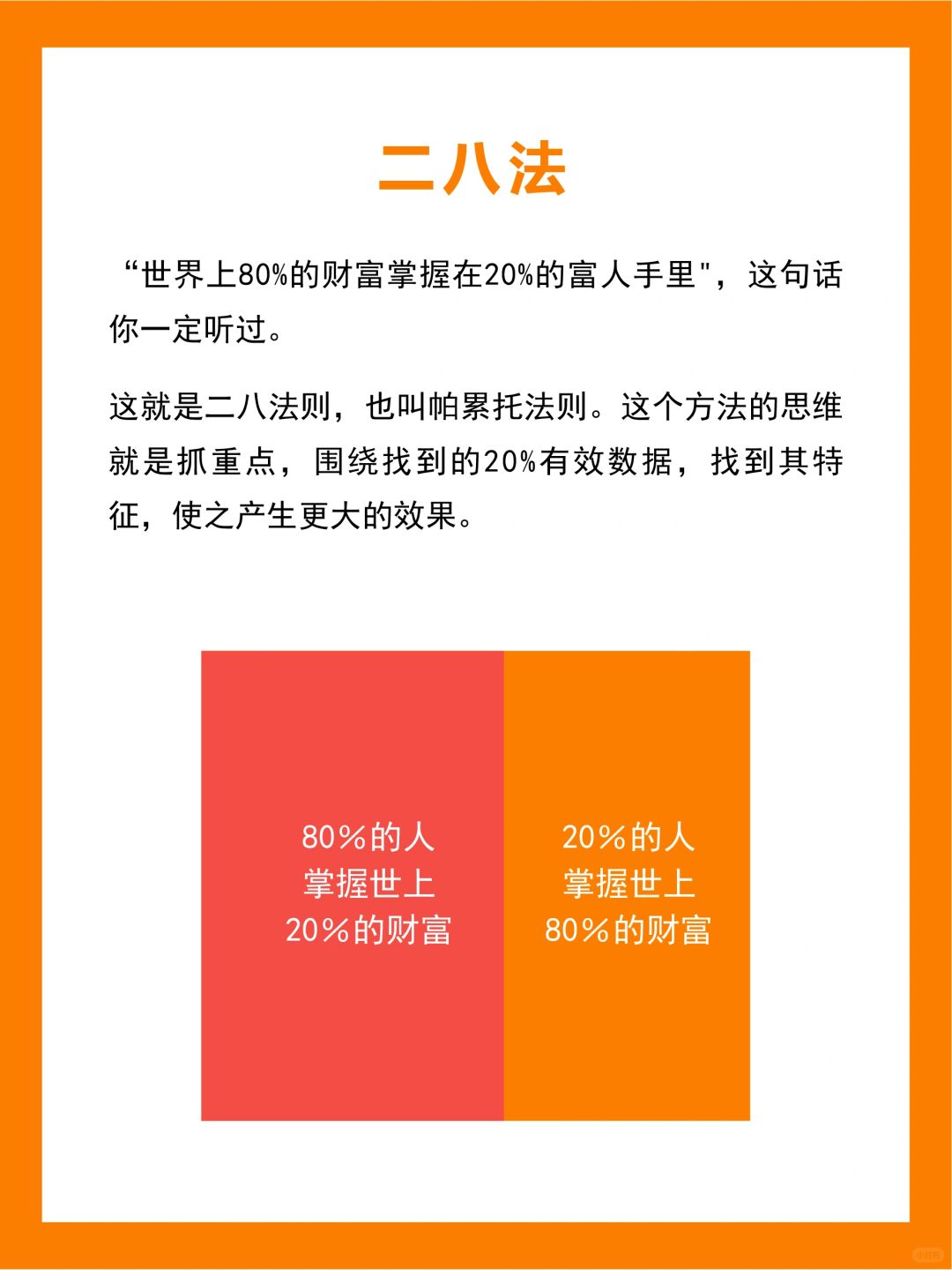 这个方法的思维就是抓重点,围绕找到的20%有效数据,找到其特征,使之产生更大的效果