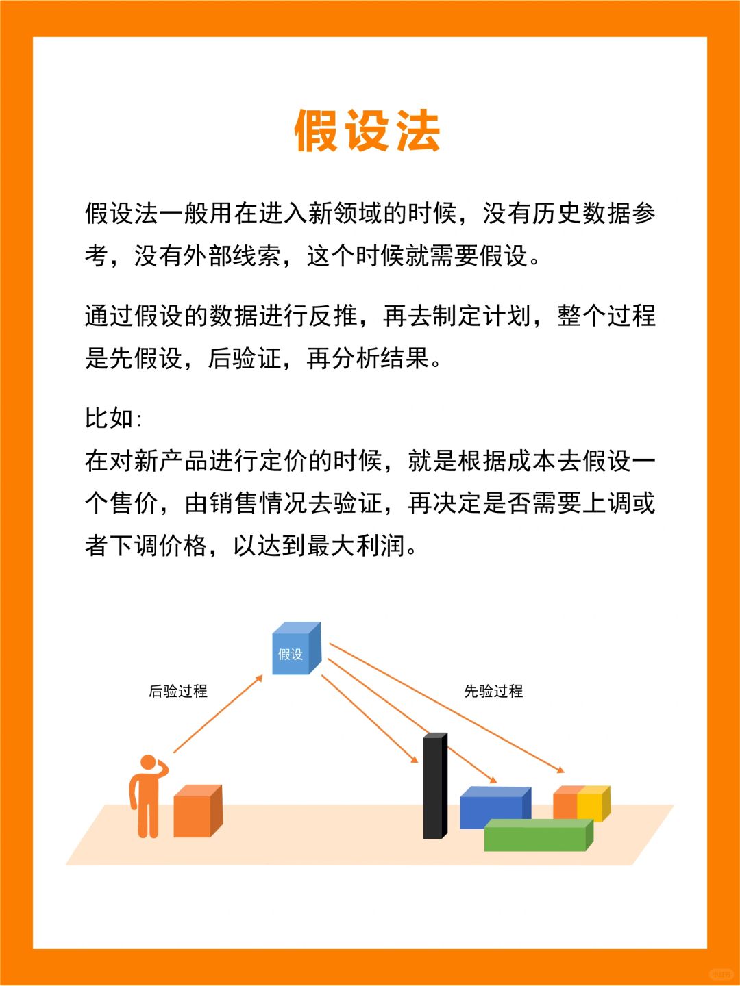 假设法一般用在进入新领域的时候,没有历史数据参考,没有外部线索,这个时候就需要假设