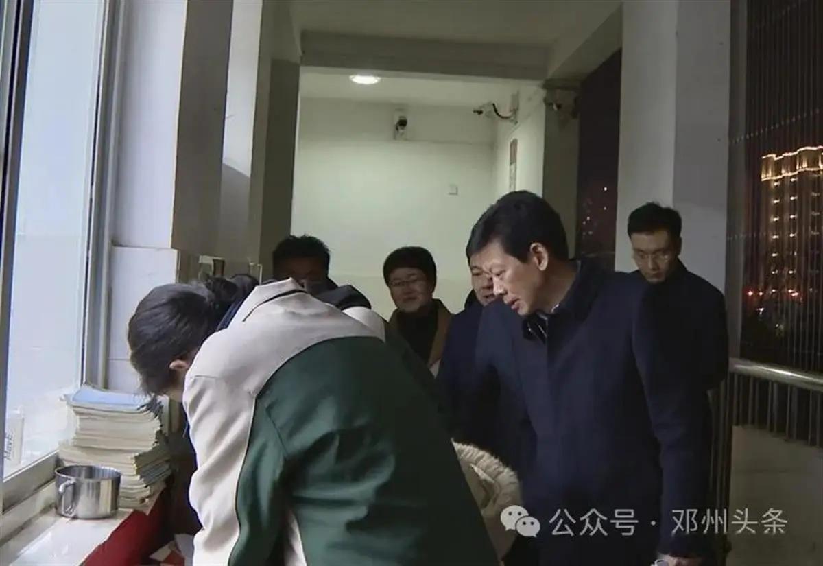 据报道,1月15日晚上8时30分,邓州市委书记邓俊峰一行来到市一高中大门口。