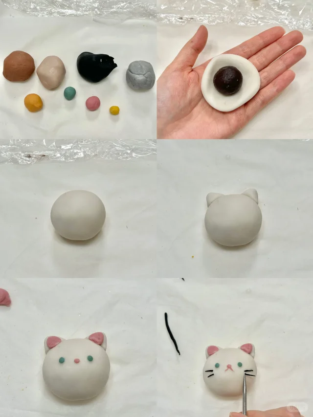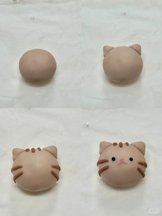 ④图示做出小猫造型(沾水更好粘合)