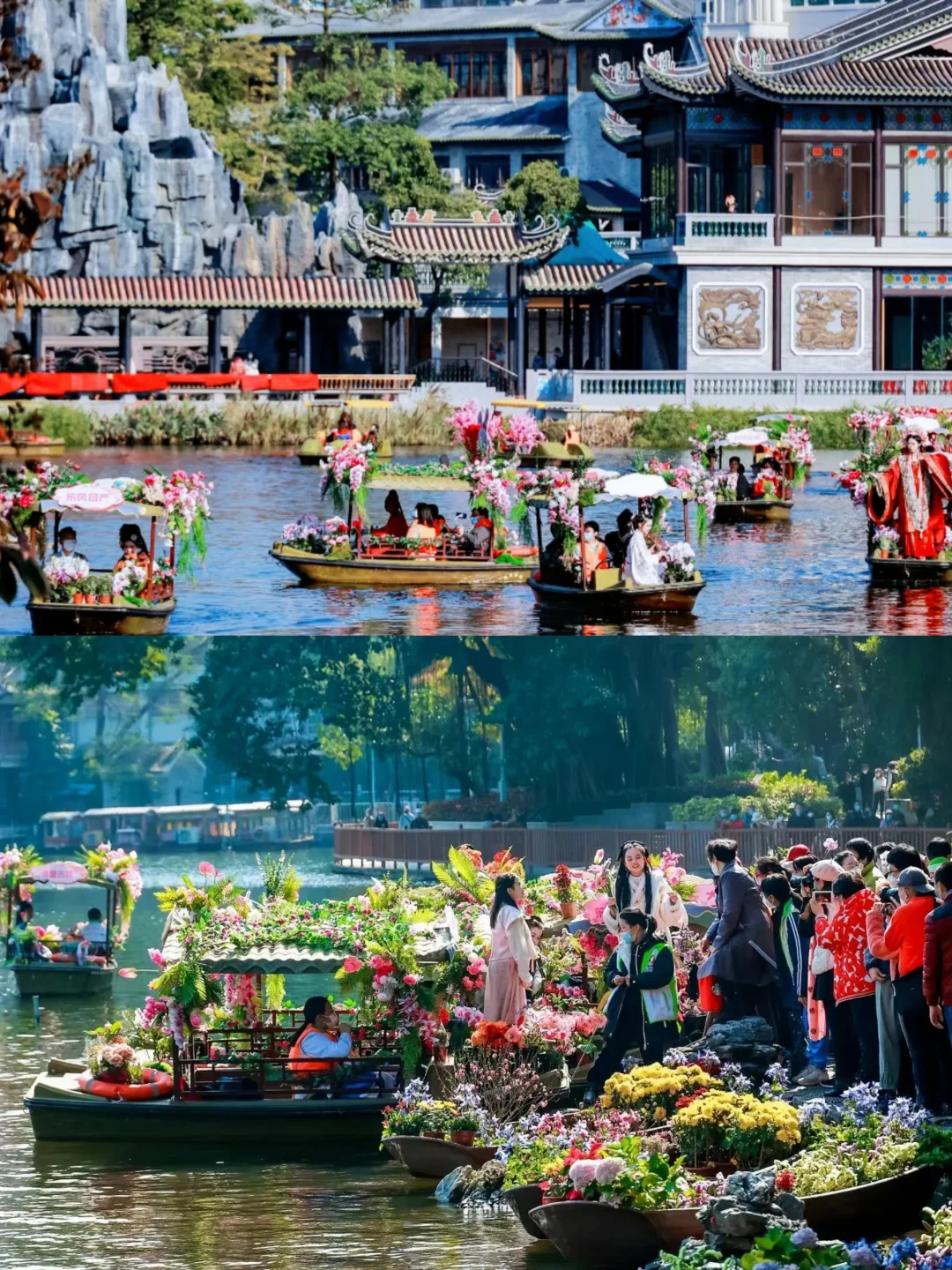 我家年味不一般 寻找街头年味 来广州过年有多好玩? 作为一个在广州生活了十年的旅游博主 今天就给小伙伴们总结了4⃣条新春旅游线路 带你去感受浓浓的中国年味 - 线路1⃣:西关老街一日游 线路推荐:荔湾路(新春花街)➠ 泮塘五约古村➠ 荔湾湖公园(水上花市)➠ 荔枝湾➠ 粤剧博物馆➠ 永庆坊➠ 恩宁路 🌸水上花市: 岸上鲜花盛开,水上花舫飘香 古色古香的花舫在荔湾湖上巡游,年俗摊位街年味十足,人头攒动好不热闹 - 线路2⃣:欧式风情一日游 线路推荐:圣心大教堂➠ 爱群大厦➠ 新华大酒店➠ 南方大厦➠ 邮政博物馆➠ 粤海关➠ 人民桥➠广州文化公园(迎春花会和元宵灯会)➠ 沙面岛(白鹅潭春节烟火) 🎆 时隔12年,广州白鹅潭春节烟花回归,将于2月10日大年初一在白鹅潭隆重呈现,带来45分钟具有国际水准的烟花表演 - 线路3⃣:都市地标一日游 推荐路线:广州艺术博物馆➠ 广州塔➠ 海心桥➠ 海心沙➠ 广州大剧院 🏙打卡广州地标建筑,领略现代都市的繁华 - 线路4⃣:花城公园一日游 推荐路线:聚芳园➠ 麓湖➠ 云台花园➠ 白云山 🌸今年来广州过年,不仅有传统花街逛,更幸运的是还遇上了园博会,好好感受一下春回大地的繁花似锦吧
