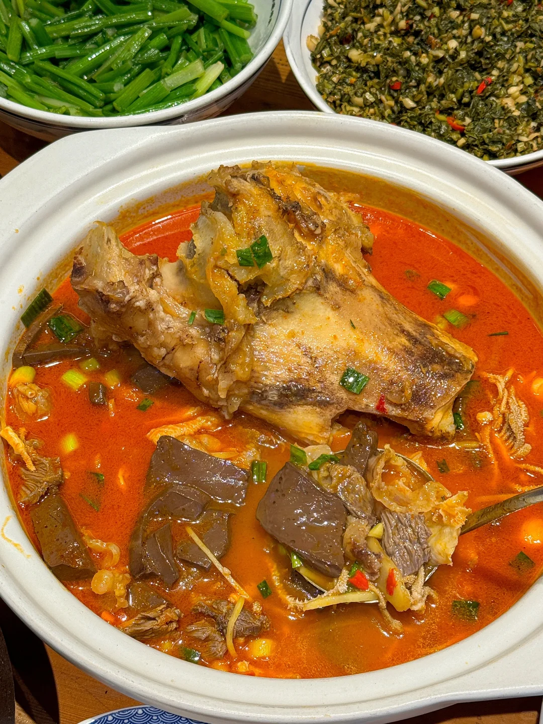 这家如果没有本地人带路真的很难找到…不是网红店!!来之前就查了口碑很好👍🏻几乎0差评、店里基本都是本地人!!看菜点菜,农家菜很新鲜!真的好好吃!我们晚上六七点到🔥全部都坐满了… 老板用心在菜品上做研究:很多地道湘菜这里才能吃到:船拐子肉、粉蒸肥鹅、酒糟黄菜、八宝果饭、教堂大鸡等…每个菜都好香好下饭…不夸张,是隔段时间没来就会想念这一口的程度… 📍店名:老许家鱼市
