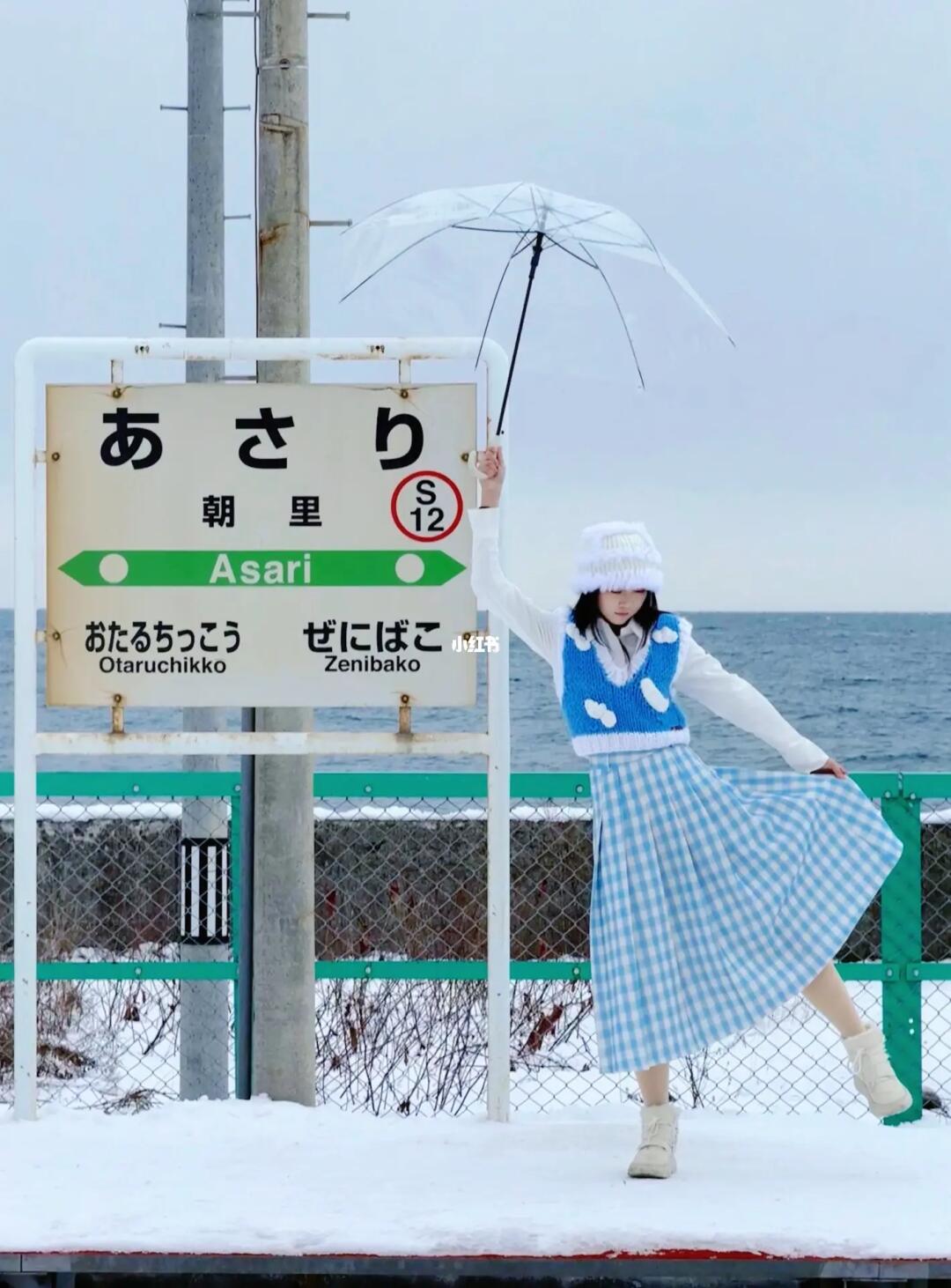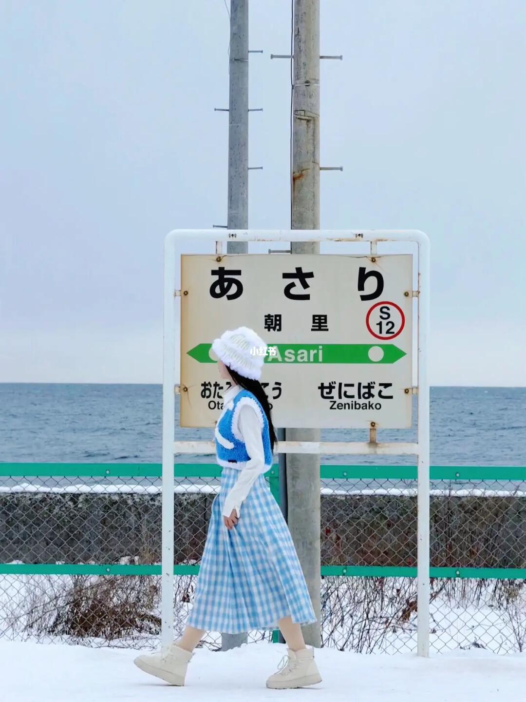 不出站‼️就可以拍到大海跟站牌,通过天桥走到对面站牌,背景是大海🌊,个人觉得很出片,拍完就可以坐车继续前往小樽啦