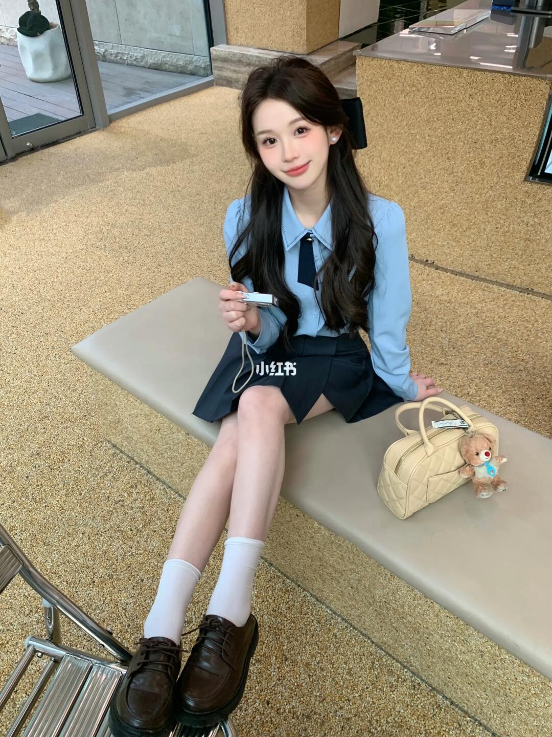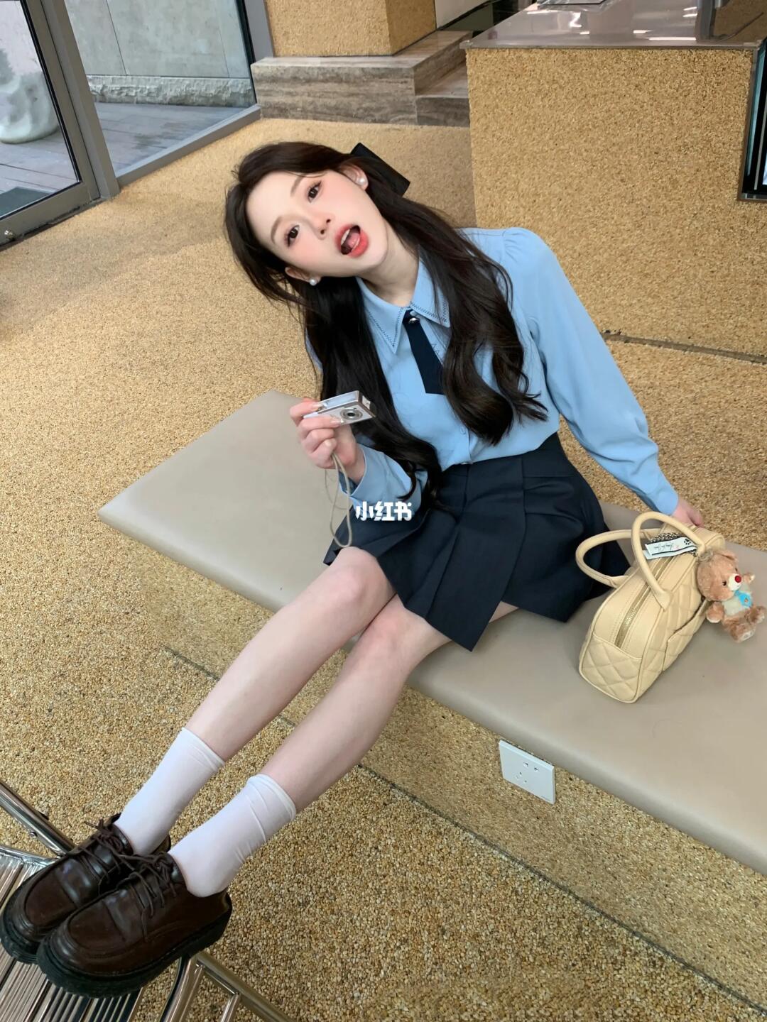 看起来好乖不过也是真的乖[暗中观察R] 学院风ootd啦 :LAGOGO 配的小熊挂件也是蓝色领带内 👔