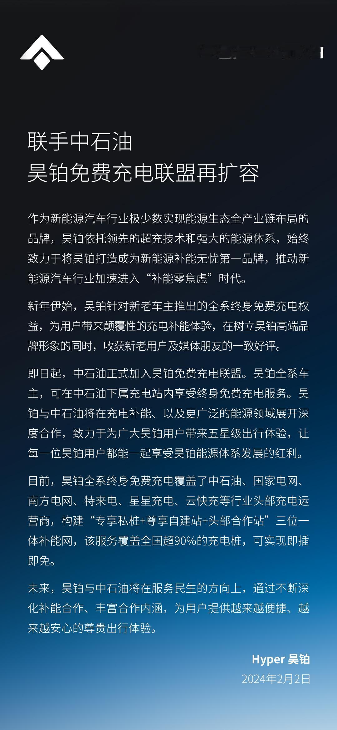 行业巨变?免费充电成为趋势? 燃油车时代,大家疯狂吐槽高昂的油价,新能源汽车时代来临,更低的电费让人欣喜。而更让人欣喜的是最近昊铂全系终身免费充电权益,联合了国网智慧车联网、南网电动、特来电,甚至连中石油也成为了昊铂免费充电联盟的一员,咱就说,昊铂这排面是真的大?预测一下,以后免费充电或许有望成为趋势!#中石油宣布加入昊铂免费充电联盟#