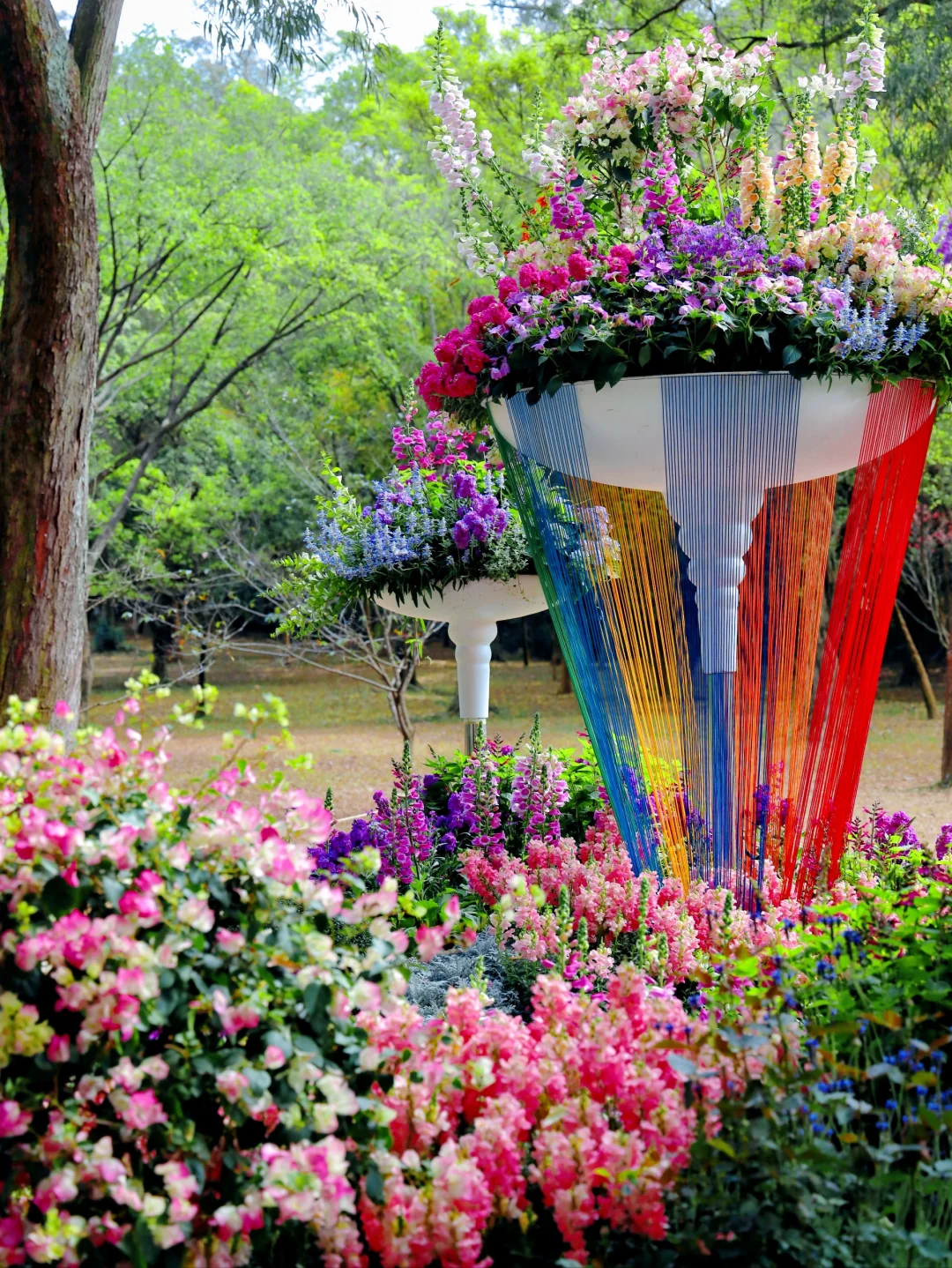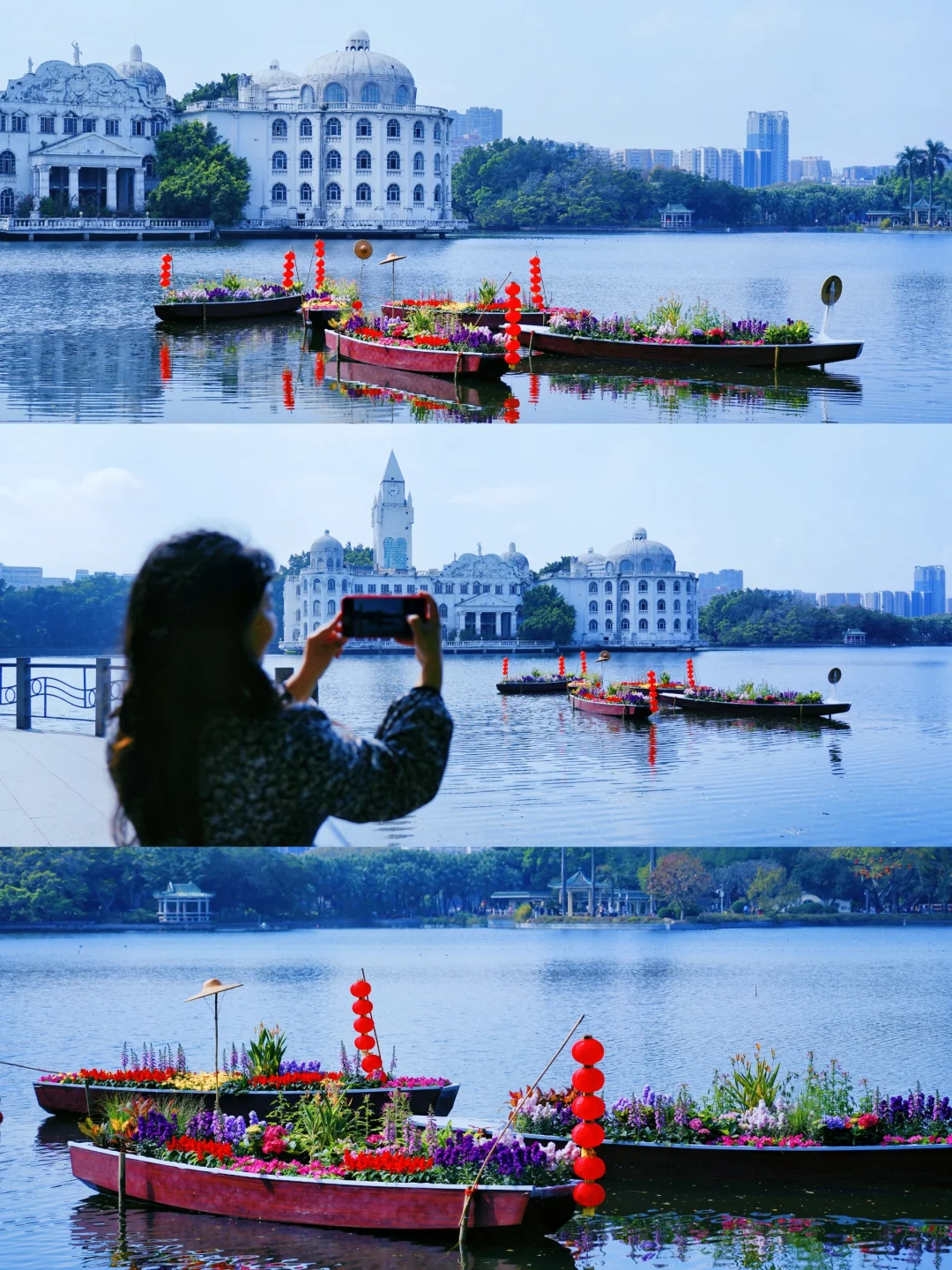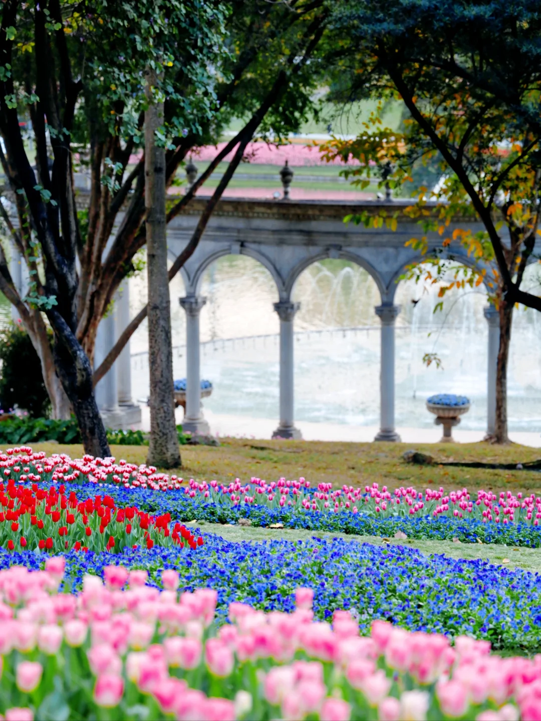我的城市换上新年皮肤了 东风吹散梅梢雪,一夜挽回天下春。 从此阳春应有脚,百花富贵草精神。 立春,迎春,广州的园博会也拉开了序幕 - 1⃣ 作为主会场的白云山,展区集中分布在明珠楼和鸣春谷 🔸明珠楼展区:白云山西门→明珠楼→白云松涛(全程4公里) 🔸鸣春谷展区:白云山南门→大草坪→山顶广场(全程2公里) 🌸 明珠楼展区路线的作品尤为丰富,从白云山西门入园,一路步行到明珠湖,沿途尽是繁花仙境 🎟门票:5/人(年初一至初八,全票4/人) 2月4日9:00-12:00,凭汉服免费入场 · 2⃣ 云台花园郁金香花展 ⛲️入园便被飞瀑流彩的景色所吸引 郁金香在水波粼粼的映衬下很是灵动 ⛪️罗马柱廊后的大片草坪上开满了郁金香 像极了现实版的奈莫花园唯美浪漫 🎟门票:10/人(年初一至初八,全票8/人,半票5/人 · 🌈建议游玩路线 云台花园➠ 白云山南门➠ 山顶广场➠ 观光车明珠湖➠ 白云山西门 - 3⃣ 广州市儿童公园 萌哒哒的充气龙门🐲 糖果色的花街集市🍬 开满金鱼花的小花园💐 🎟 门票:免费 🌈建议游玩路线 儿童公园南门➠ 百米花街➠ 儿童花市➠ 大草坪➠ 非遗文化馆 - 4⃣ 流花湖公园 🔸农趣园展区:园博会盆栽展区,喜欢盆栽的小伙伴可以前去观赏 🔸很受喜欢的白宫建筑,湖面上有几只装扮喜庆的花船 (两个展区距离较远,建议根据自己的喜好选择) 🎟 门票:免费