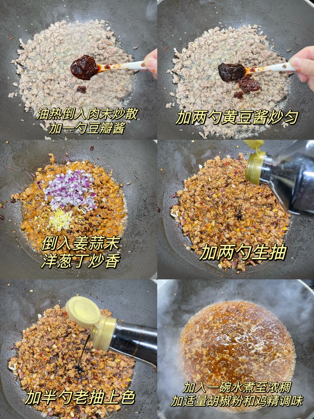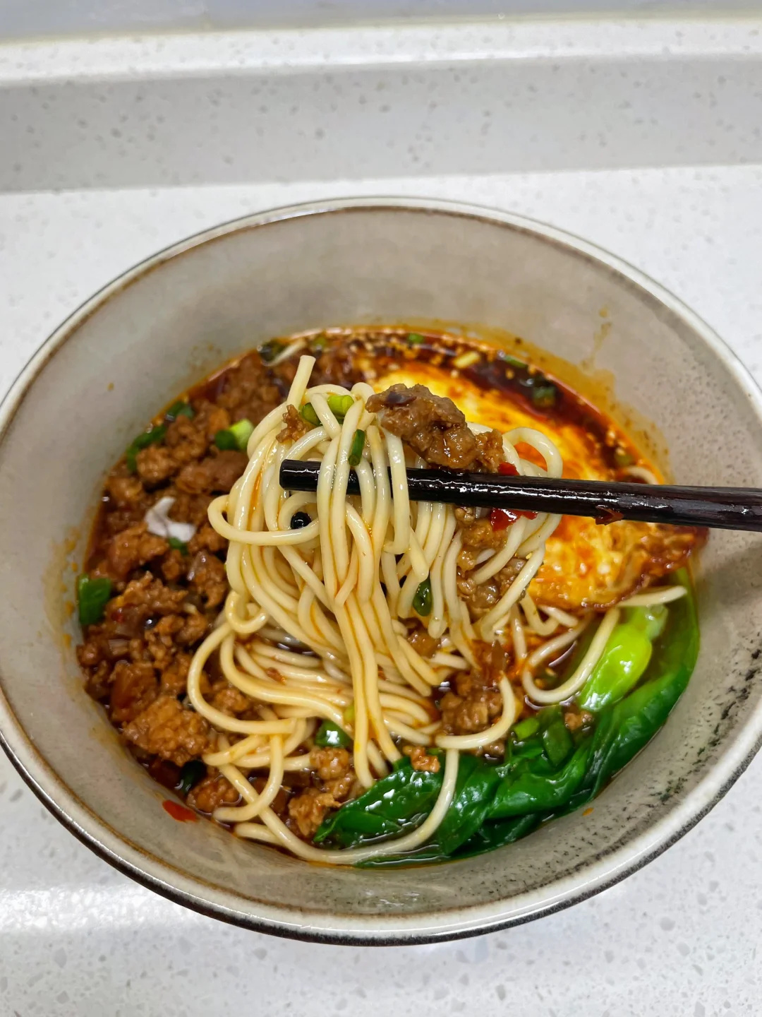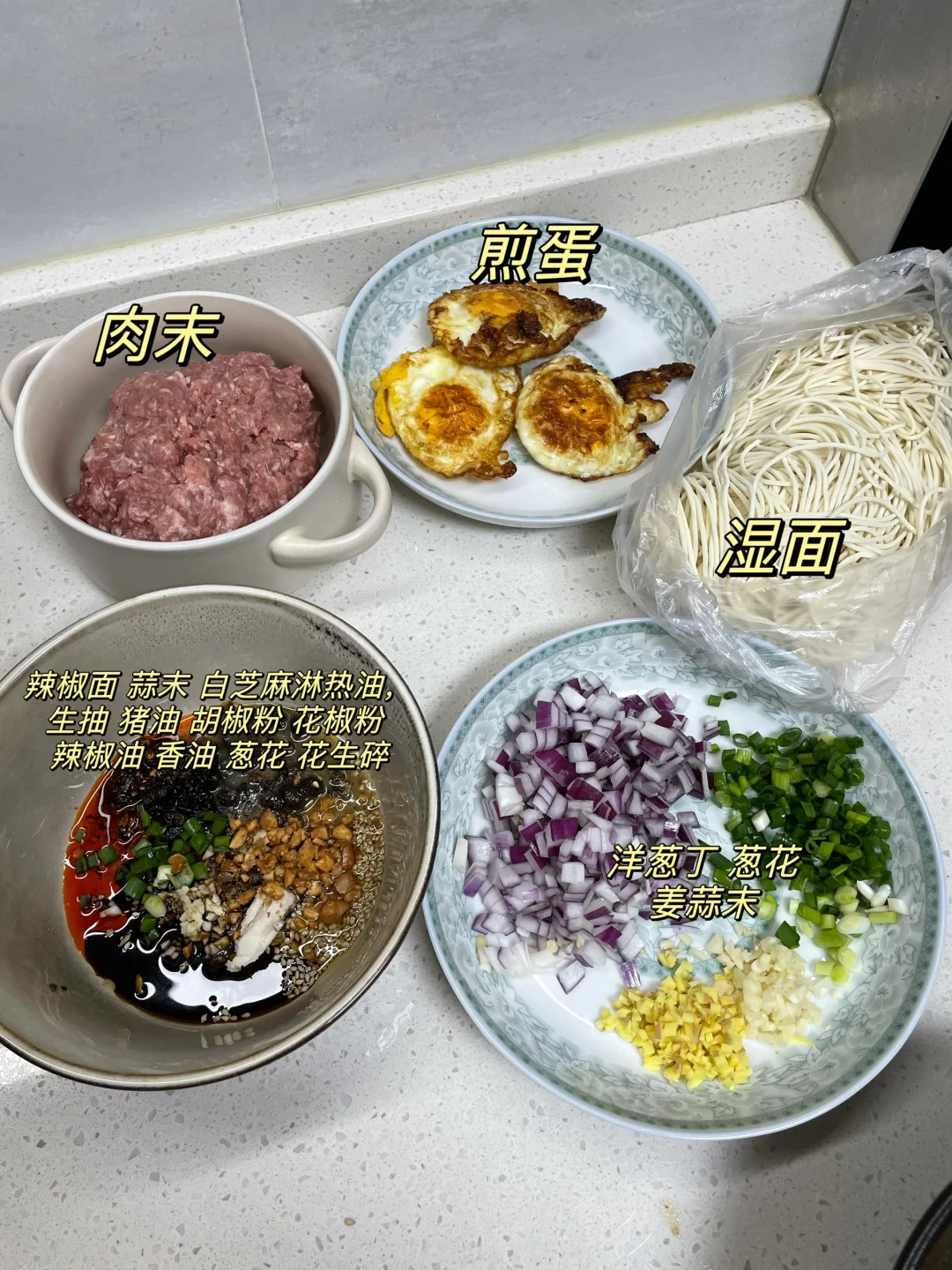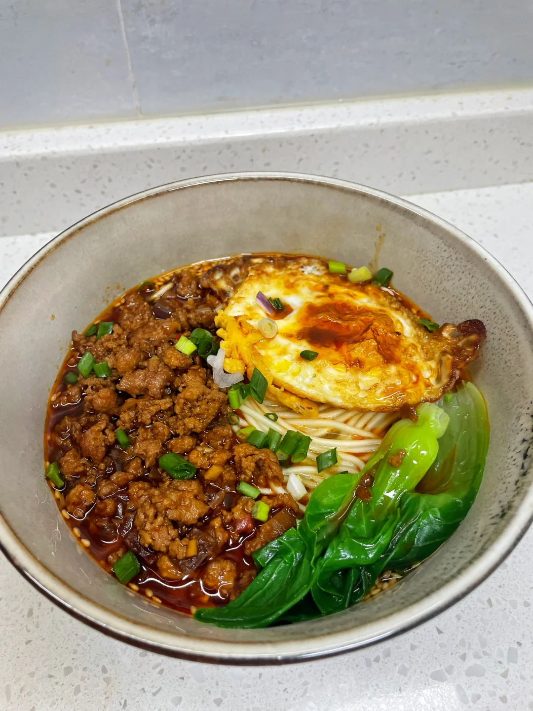 超级好吃的家庭版杂酱面,配上一个煎蛋也太美味了,味道完全不输面馆[派对R] 食材:肉末 洋葱 煎蛋 姜蒜末 葱花 小面 调料:辣椒面 蒜末 白芝麻淋热油,再加入生抽 猪油 胡椒粉 花椒粉 辣椒油 花生碎 葱花 1⃣️:锅中猪油化开后倒入肉末炒至变色,加一勺豆瓣酱,两勺黄豆酱炒出红油,再加入姜蒜末和洋葱炒香,加两勺生抽,半勺老抽,加一碗水煮至浓稠,再加入鸡精和胡椒粉调味即可 2⃣️:面碗中加入面汤,面条煮熟捞出,浇上杂酱肉末拌匀即可