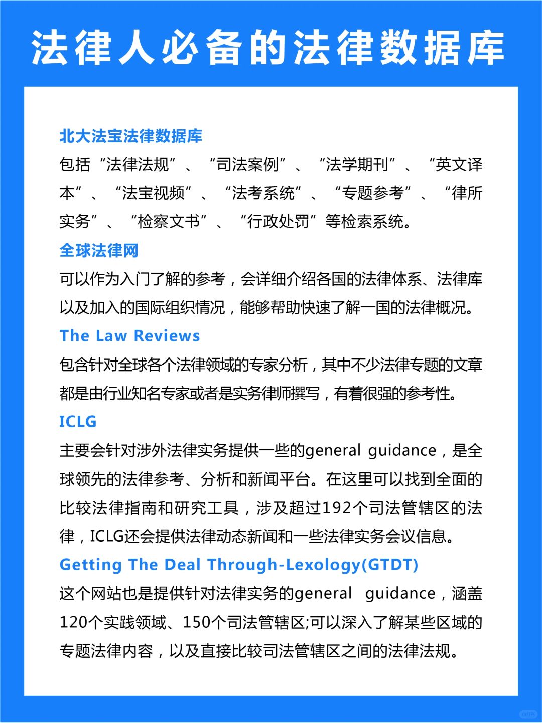 主要会针对涉外法律实务提供一些的general guidance,是全球领先的法律参考、分析和新闻平台。在这里可以找到全面的比较法律指南和研究工具,涉及超过192个司法管辖区的法律,ICLG还会提供法律动态新闻和一些法律实务会议信息。