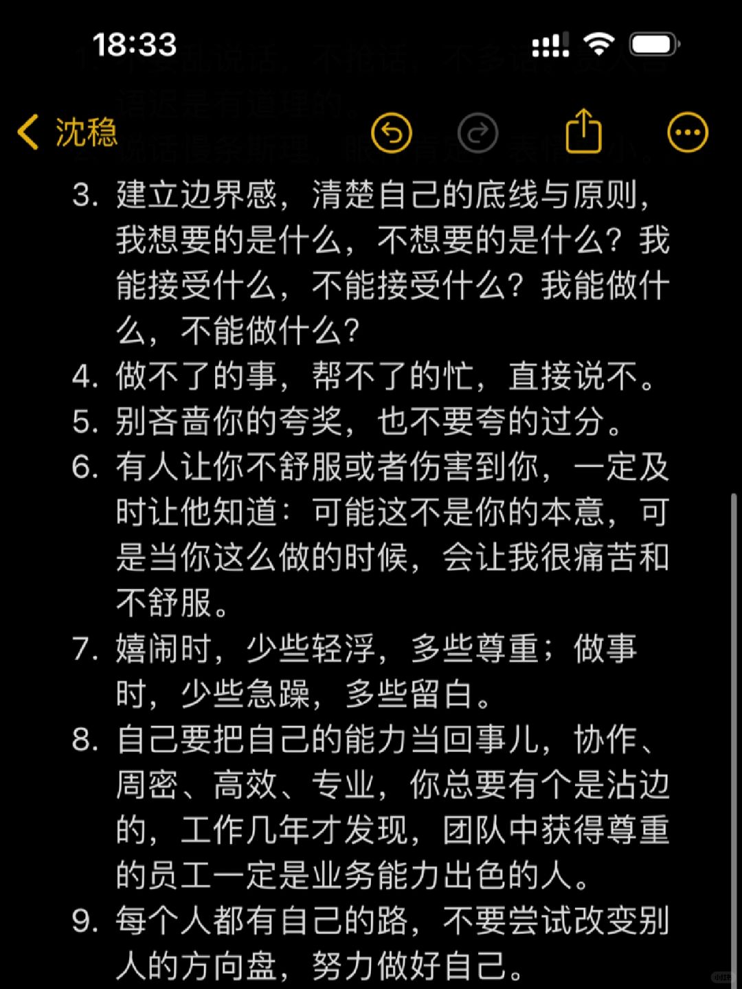 3. 建立边界感,清楚自己的底线与原则,我想要的是什么,不想要的是什么?我能接受什么,不能接受什么?我能做什么,不能做什么?