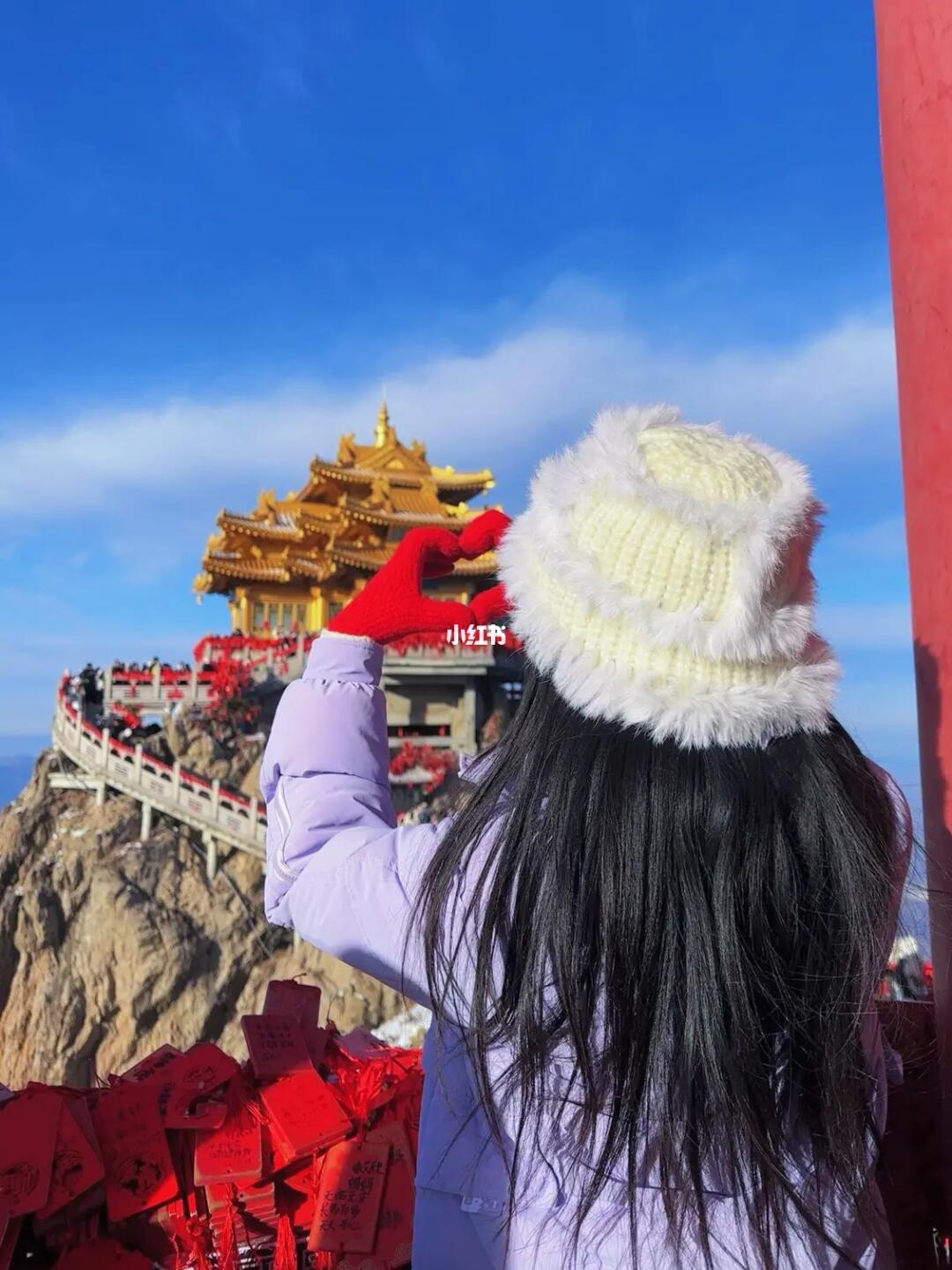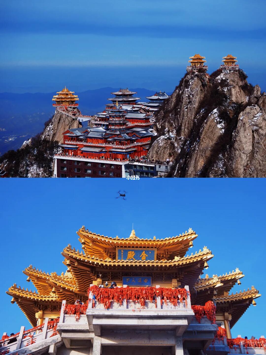💜登顶有三座金顶,金殿(王_母)、亮宝台(财_神)、玉皇顶(玉_皇_大_帝)。金顶有无人机拍视频,80一段。有两座特别陡,恐高的人下来时会有些害怕