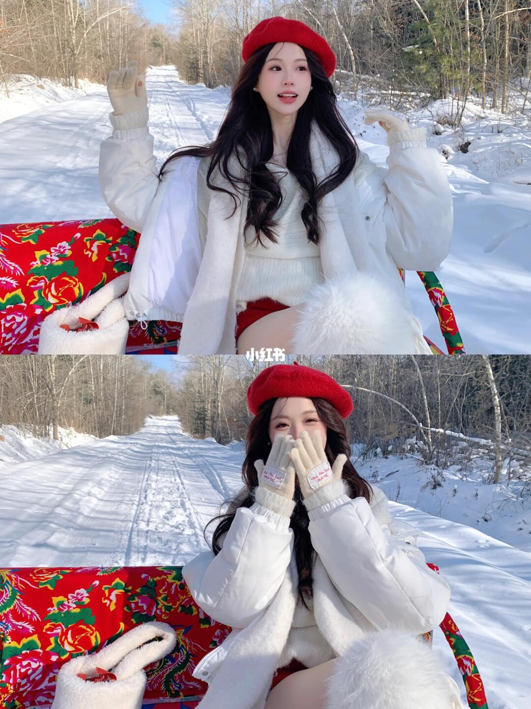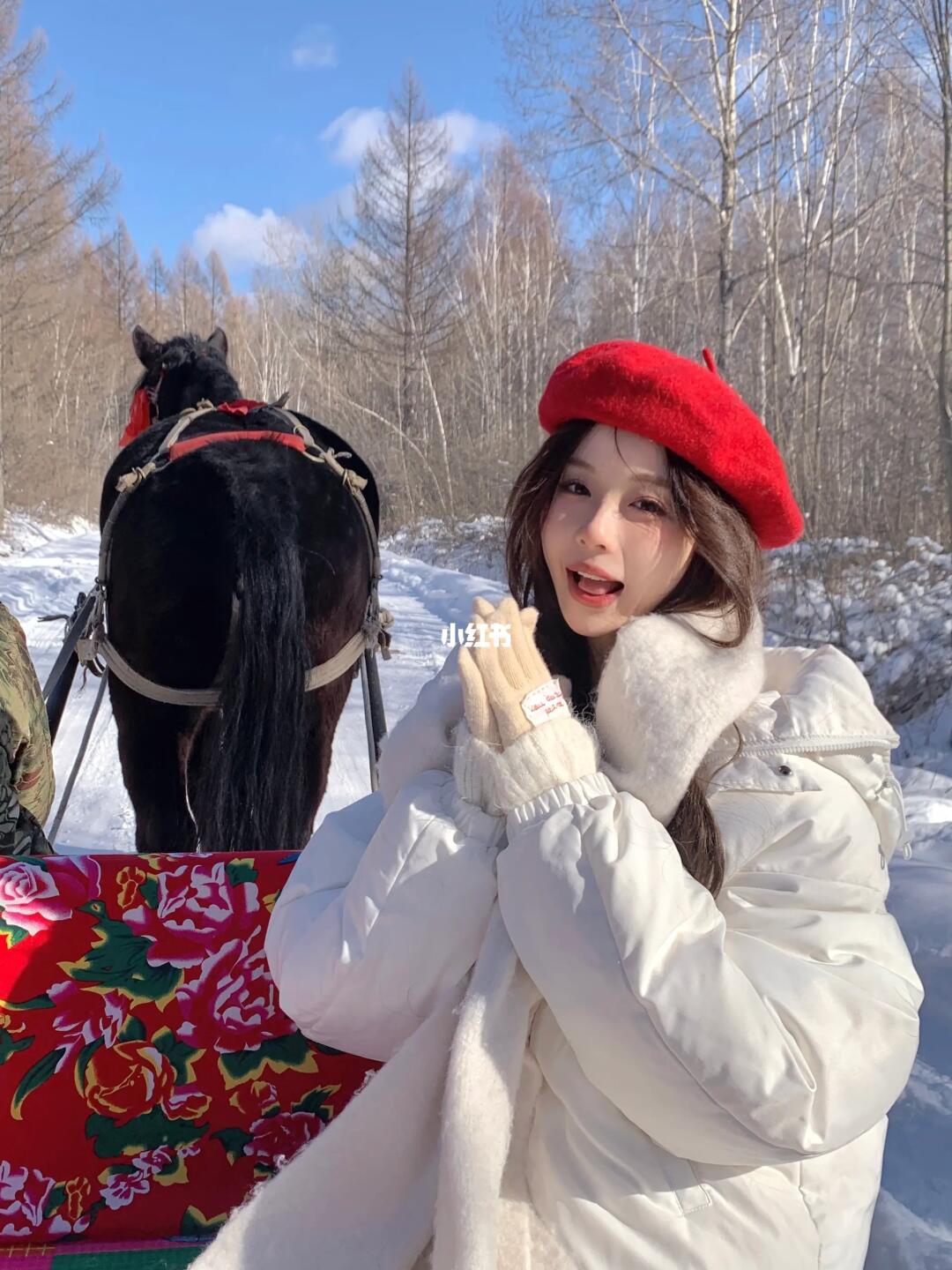 好东北呀 南方小土豆的长白山库存 本来那天想去玩雪橇犬的 狗狗们休息了 漂流去过了滑雪也去过了 雪地摩托车呢 有一种会冷死我的感觉 就去这马拉爬犁了 怎么这么喜庆呀 这大红花太可爱了 我还想着也赶赶呢 师傅不让 怕我被蹬了… 得嘞 那就📷拍拍马屁股吧