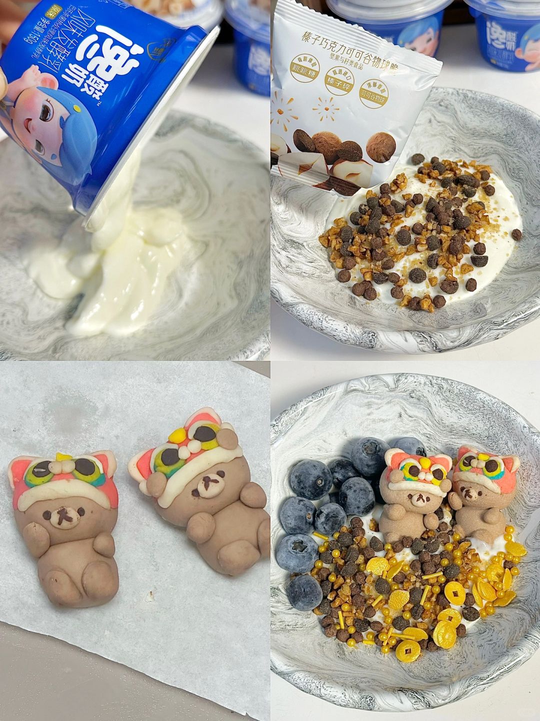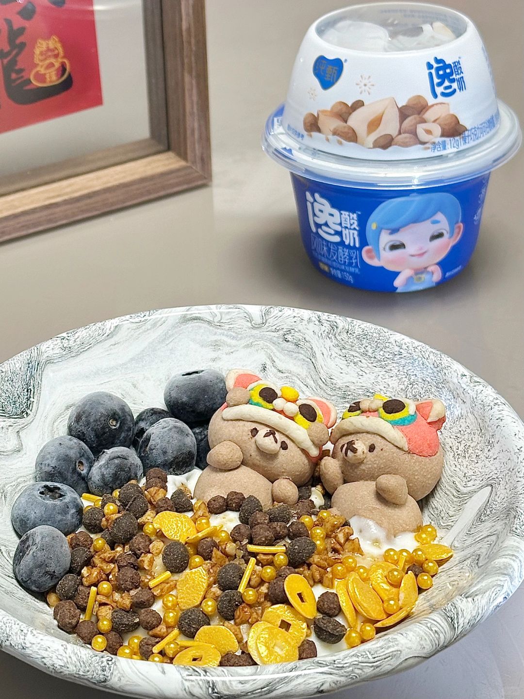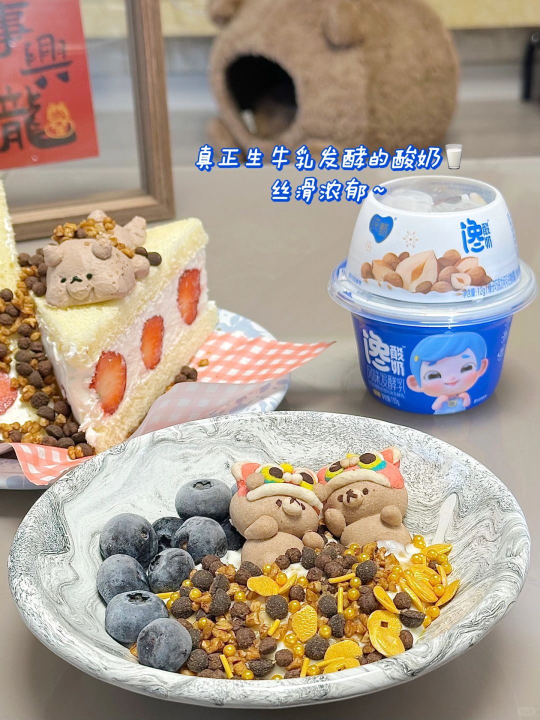 酸奶碗:纯甄馋酸奶、蓝莓🫐、饼干🍪、小糖粒