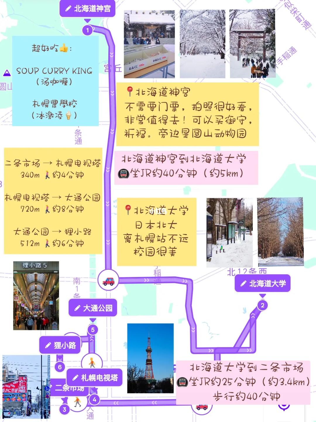 🗺️行程:北海道神宫——北海道大学——二条市场——札幌电视塔——大通公园——狸小路