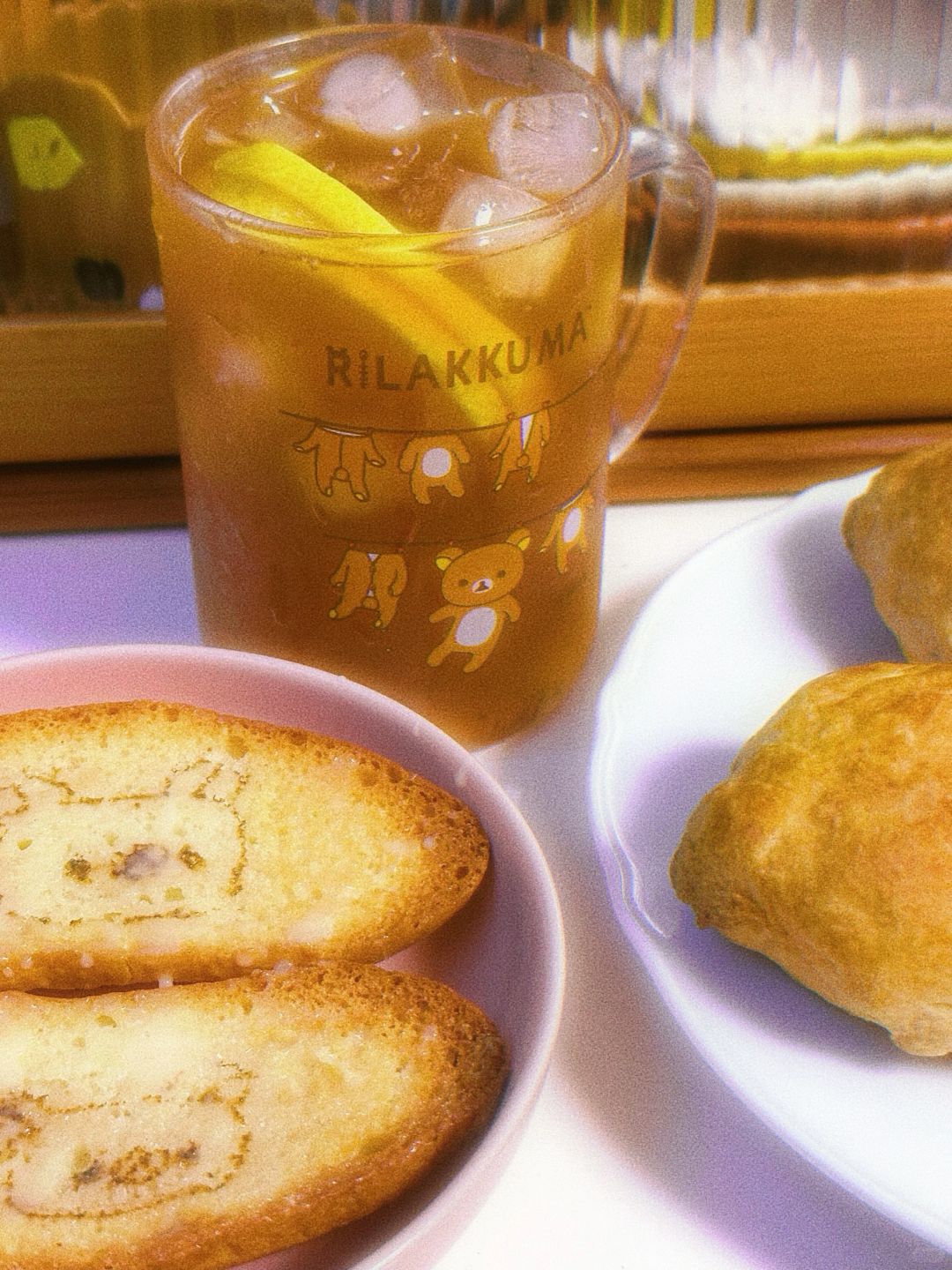 柠檬茶(做法可能有点疯但是还是很好喝的):冰块、柠檬、红茶、15g糖(喜欢甜的可以多加)、25g开水