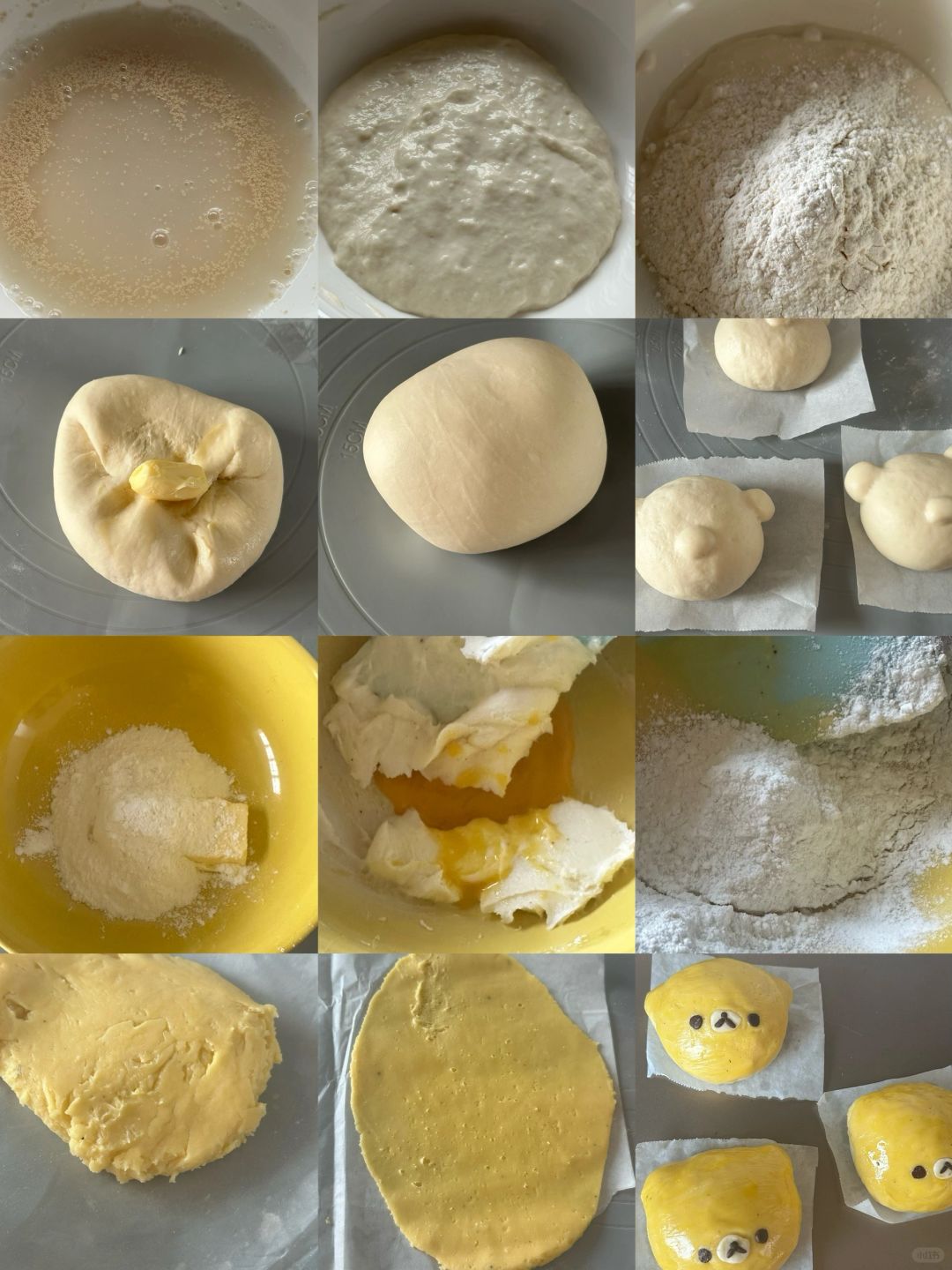 猪仔包:70g酵种、20g水、45g中筋面粉、黄油、炼乳、色素