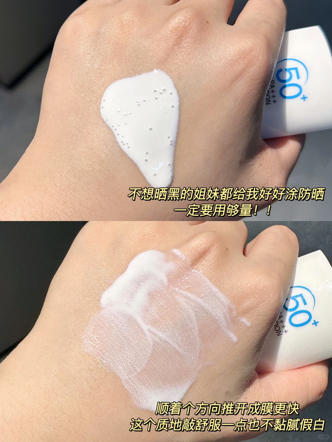 我是一年四季都会认真防晒的,这也是我保持冷白皮的秘诀!一般妆前我只用这支防晒霜,乳液的质地特别好推开,肤感很清爽水润,大油皮用也不会觉得厚重闷痘,还有一点提亮的效果,不回假白,有时候懒得化妆就涂它加个口红出门,素颜霜的钱都省嘞!